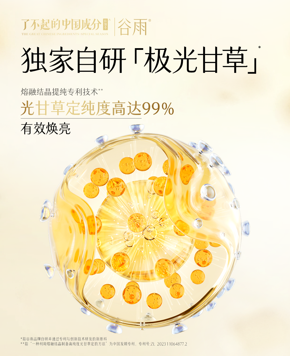 - 谷雨,更适合中国人肤质的植萃美白。专研中华珍稀美白植萃光甘草定,深入研究中国人肤质特点,打造中国女性独有的仙气白。