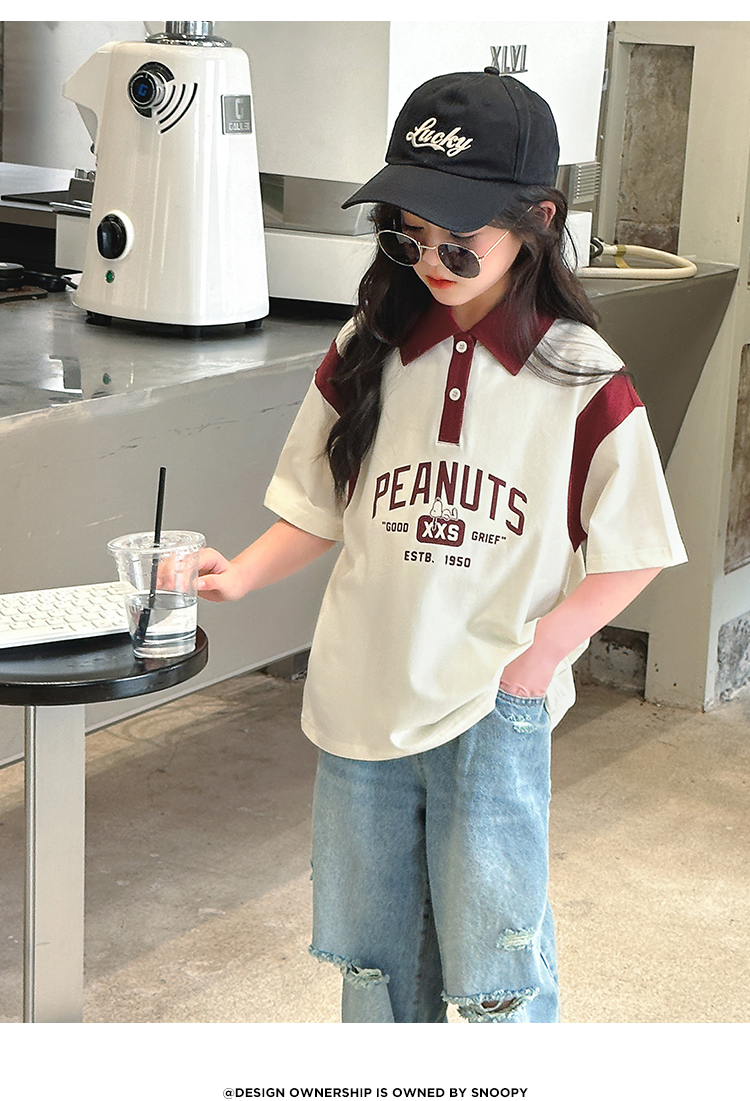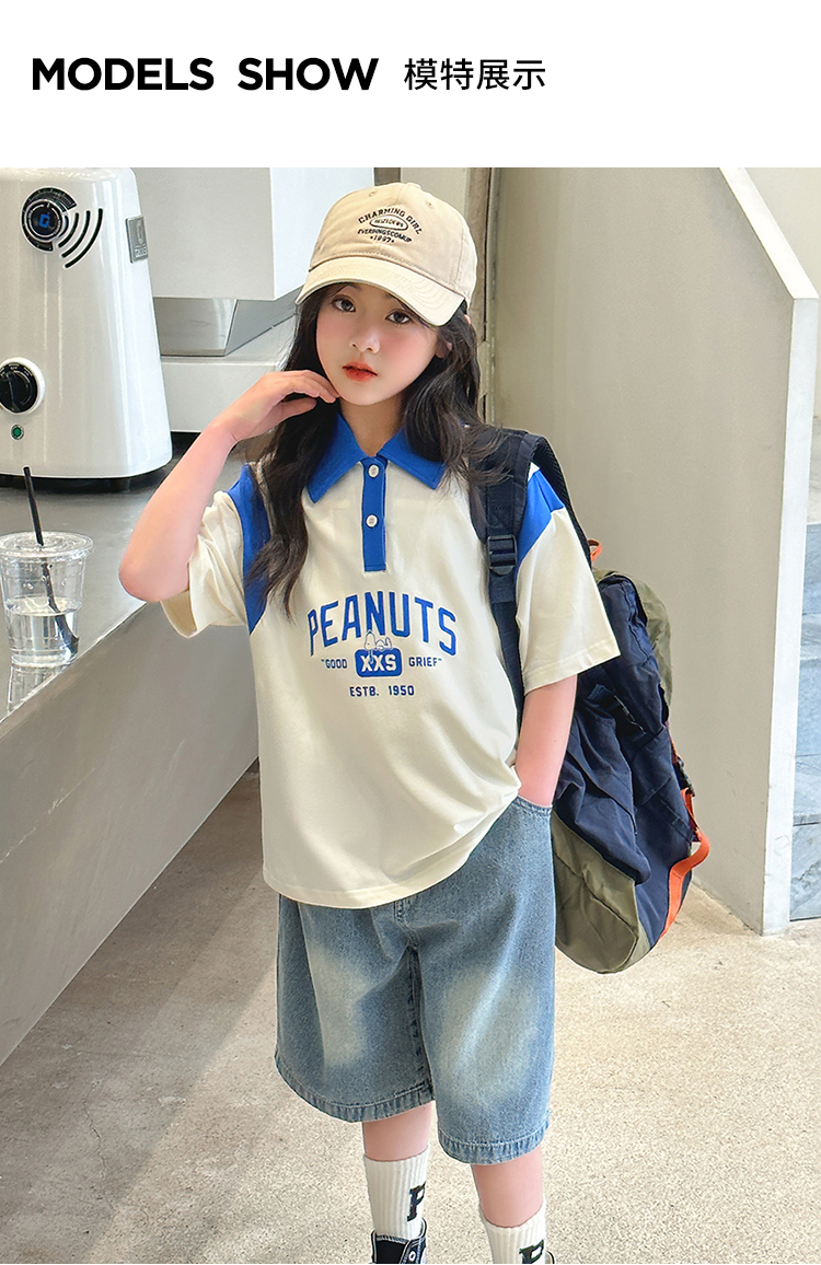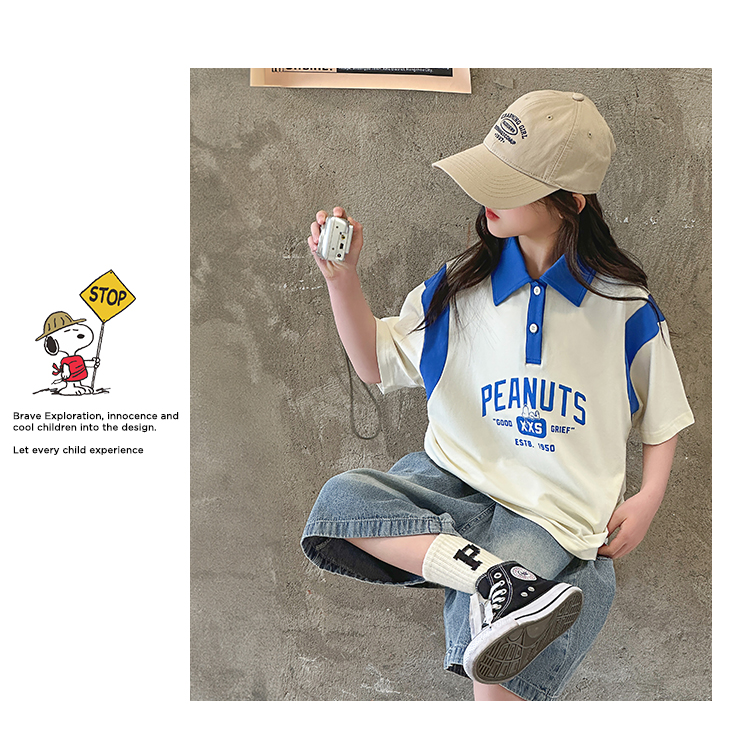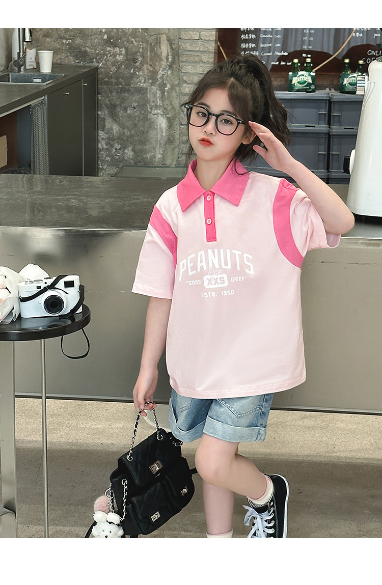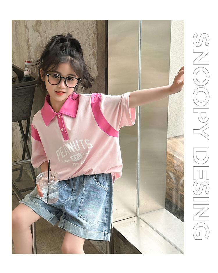 【130-165】【史努比】女童短袖学院风POLO衫中大童翻领T恤
