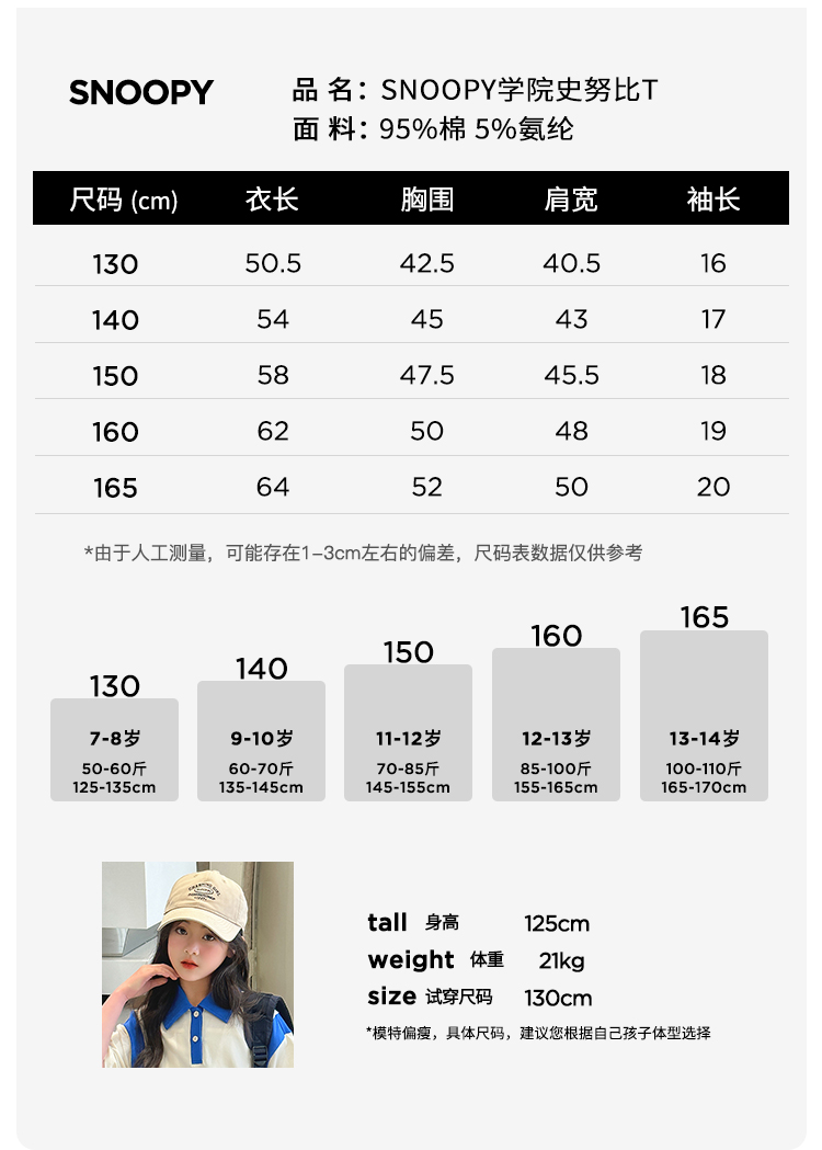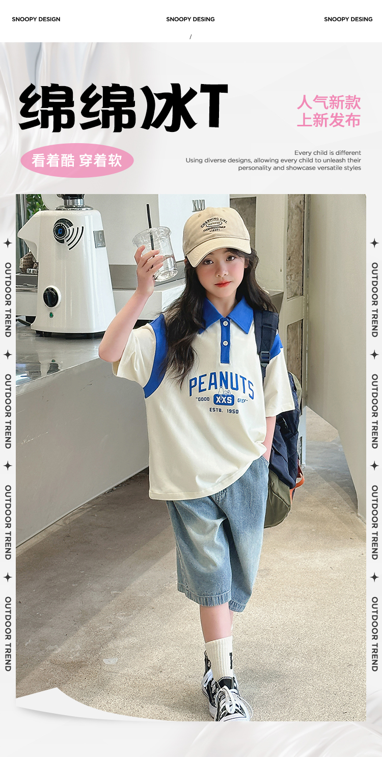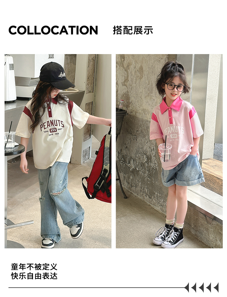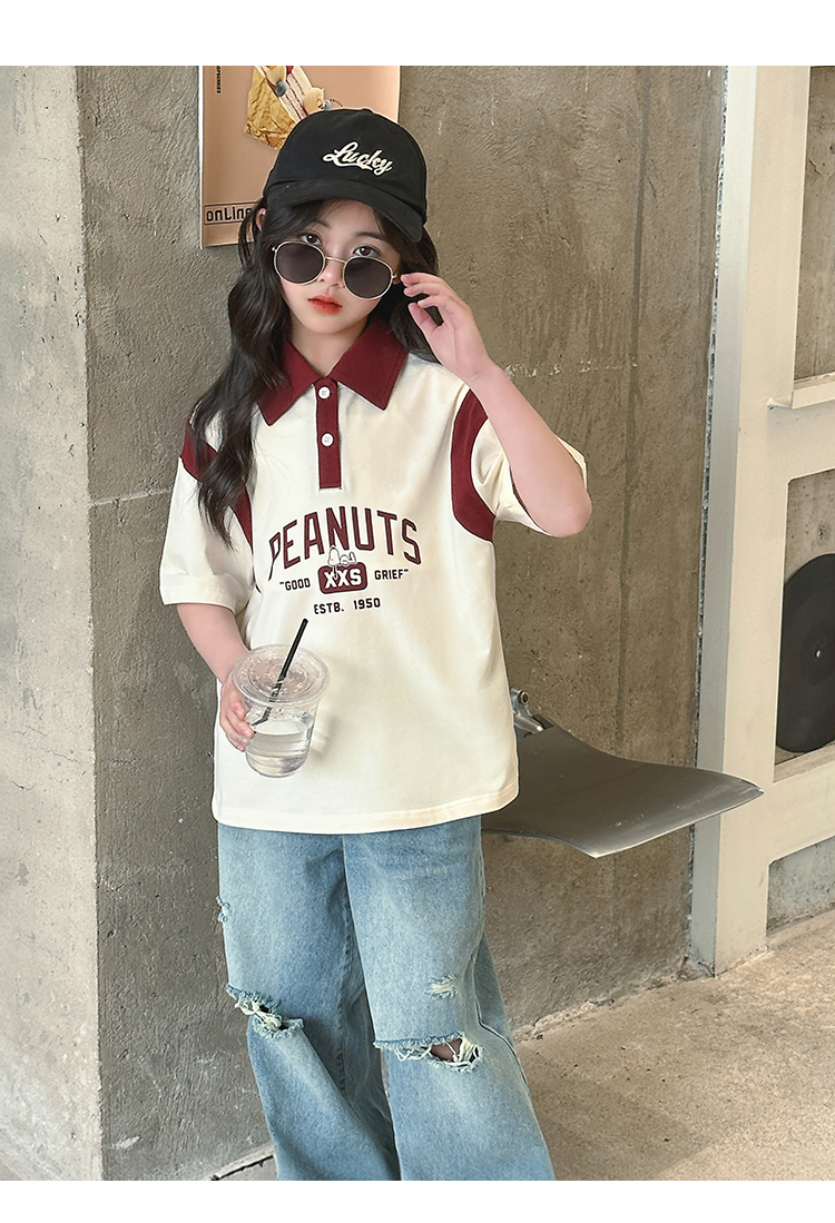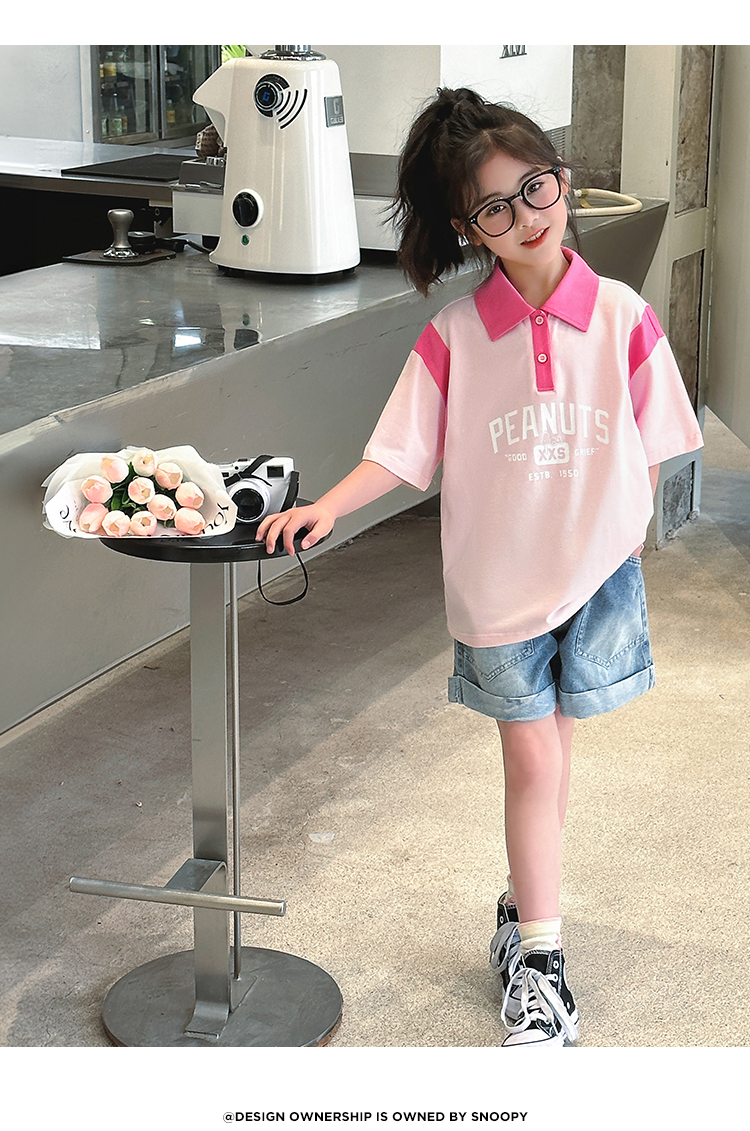 【130-165】【史努比】女童短袖学院风POLO衫中大童翻领T恤