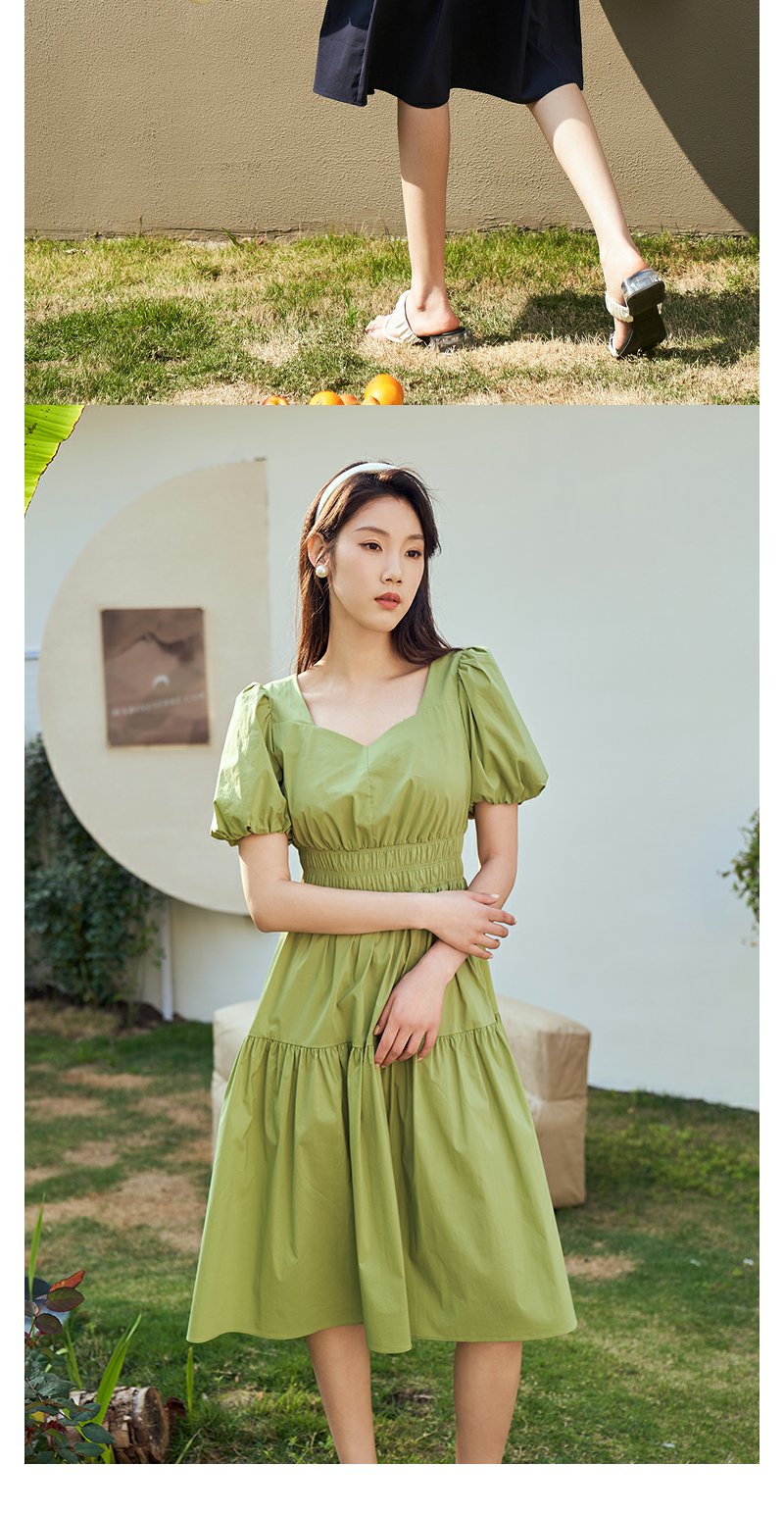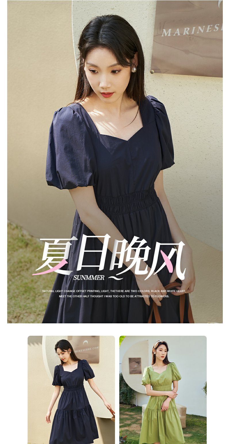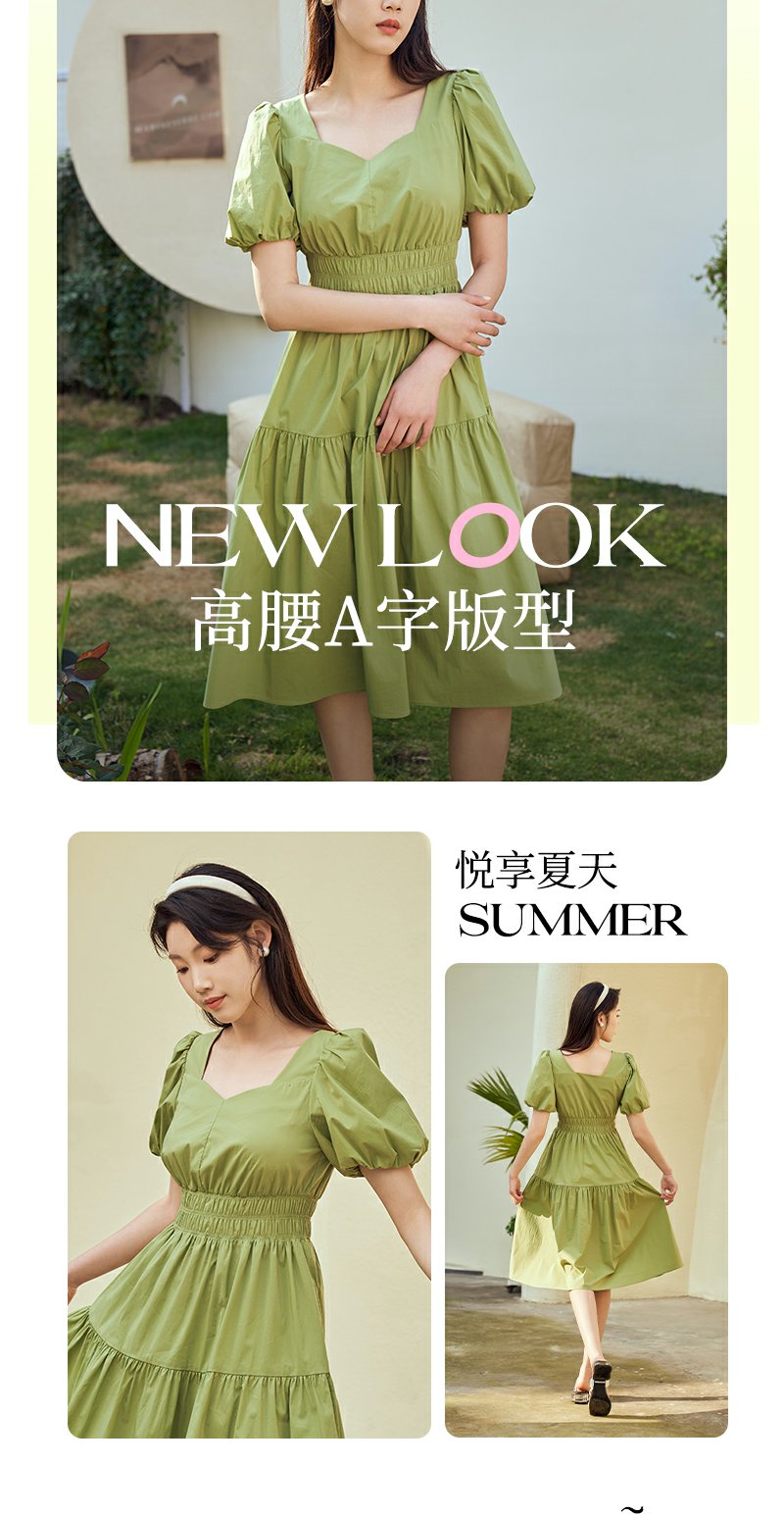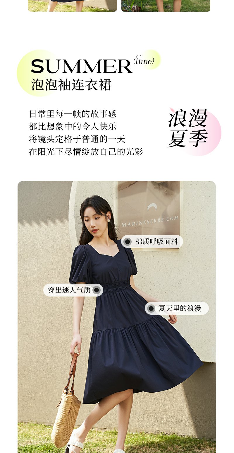 NEELLY纳俪法式泡泡袖连衣裙女中长款打缆收腰显瘦大摆A字裙夏季N23044Y05502