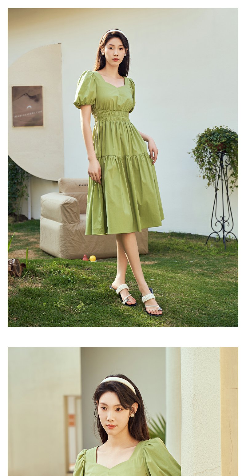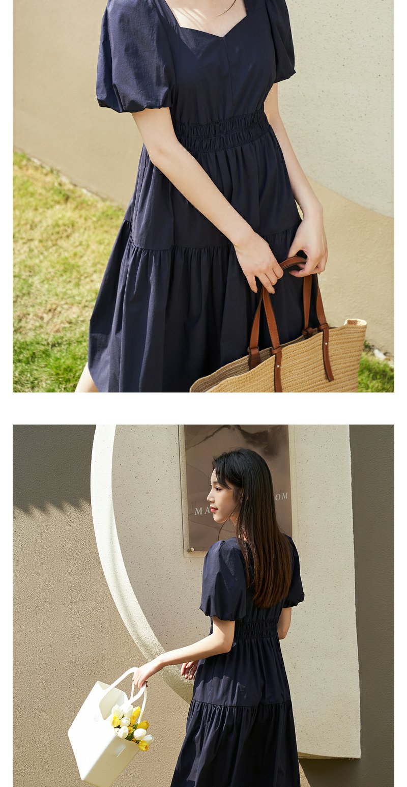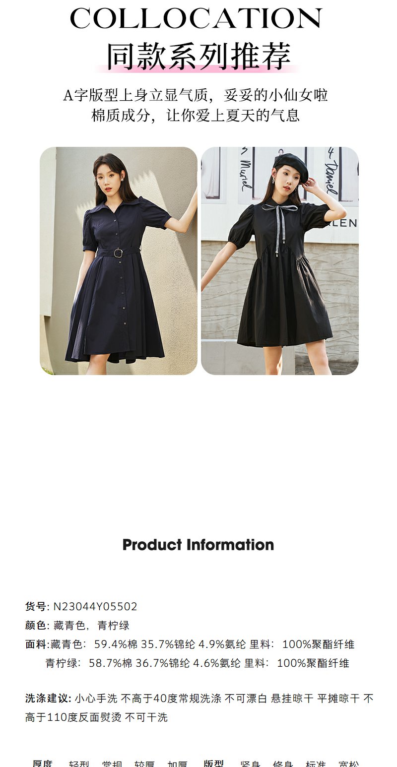 NEELLY纳俪法式泡泡袖连衣裙女中长款打缆收腰显瘦大摆A字裙夏季N23044Y05502
