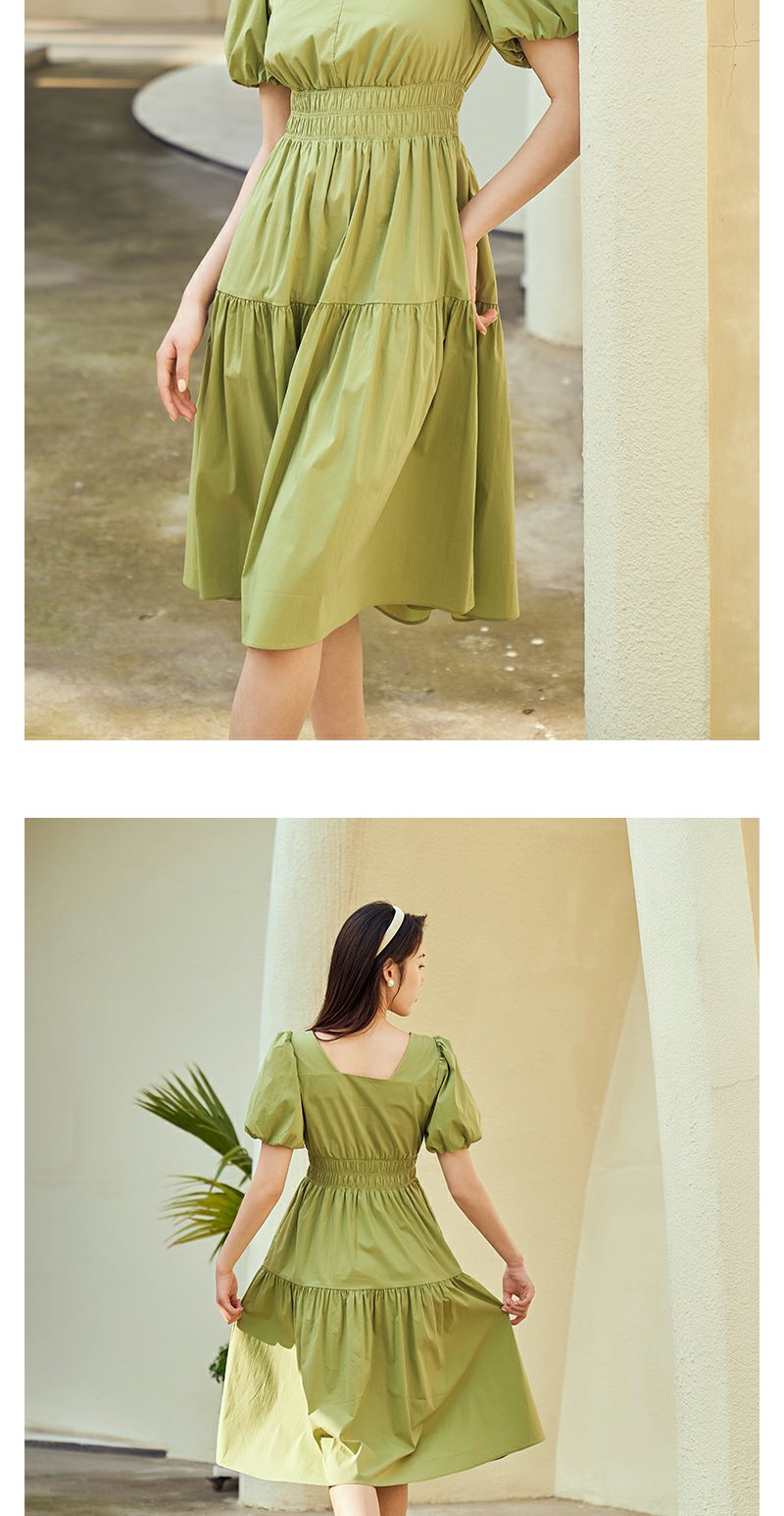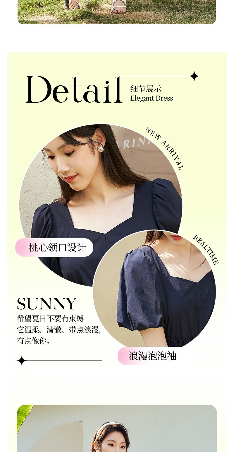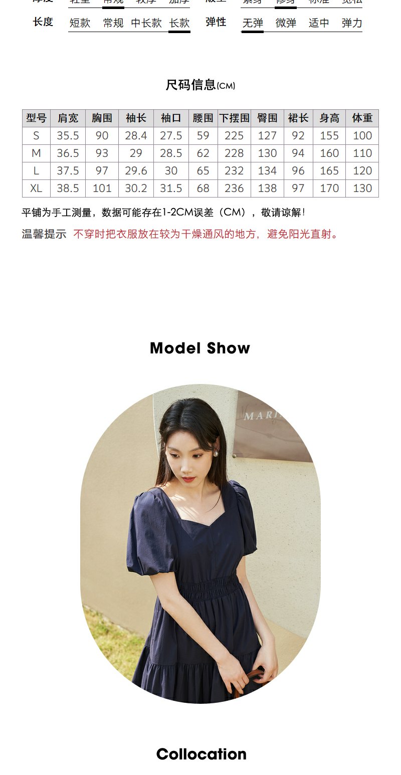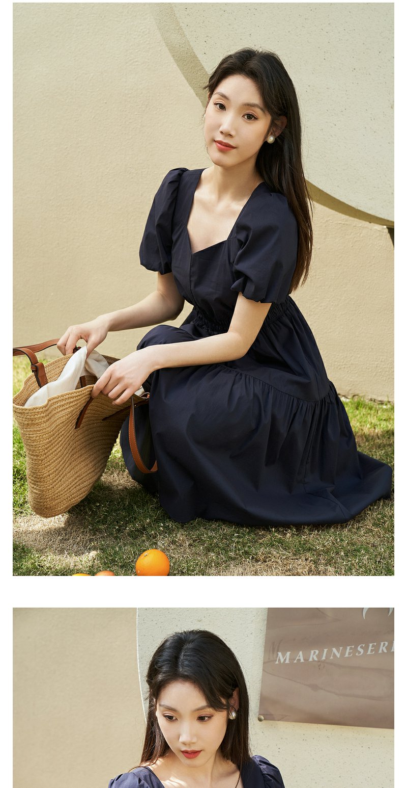 NEELLY纳俪法式泡泡袖连衣裙女中长款打缆收腰显瘦大摆A字裙夏季N23044Y05502