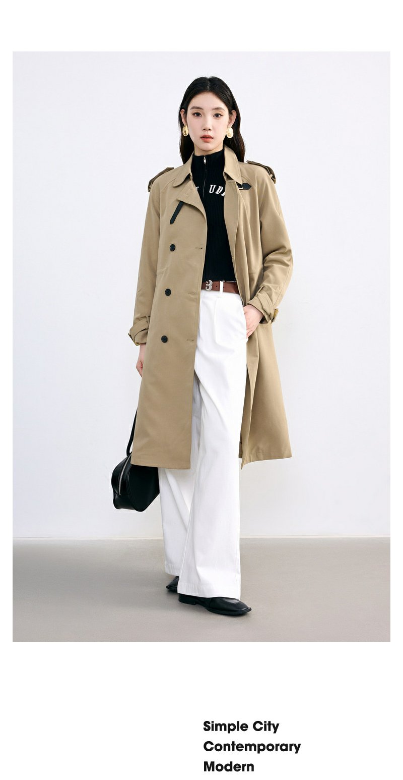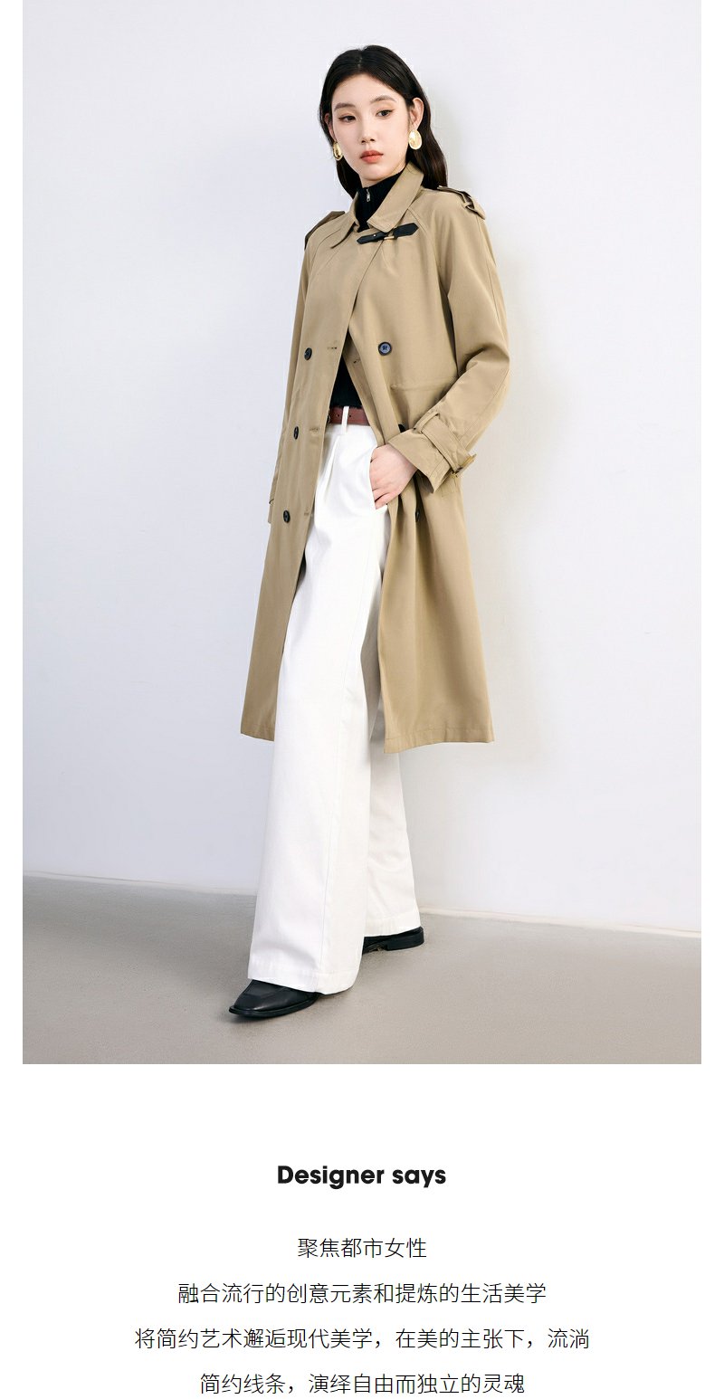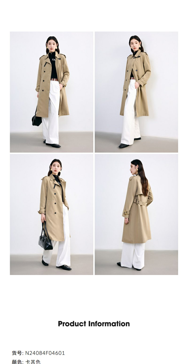 NEELLY纳俪2024秋商场同款中长款*双排扣风衣女新款通勤外套N24084F04601