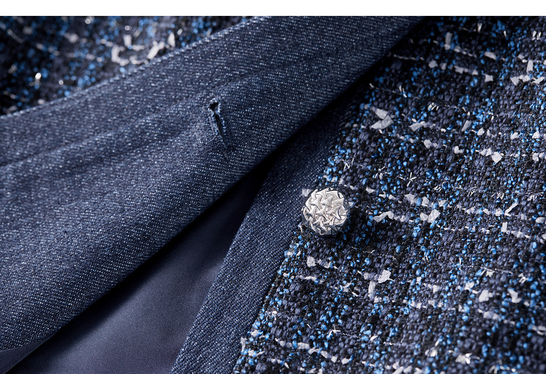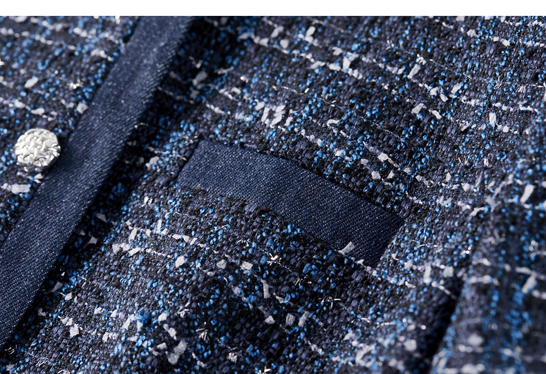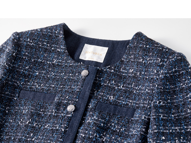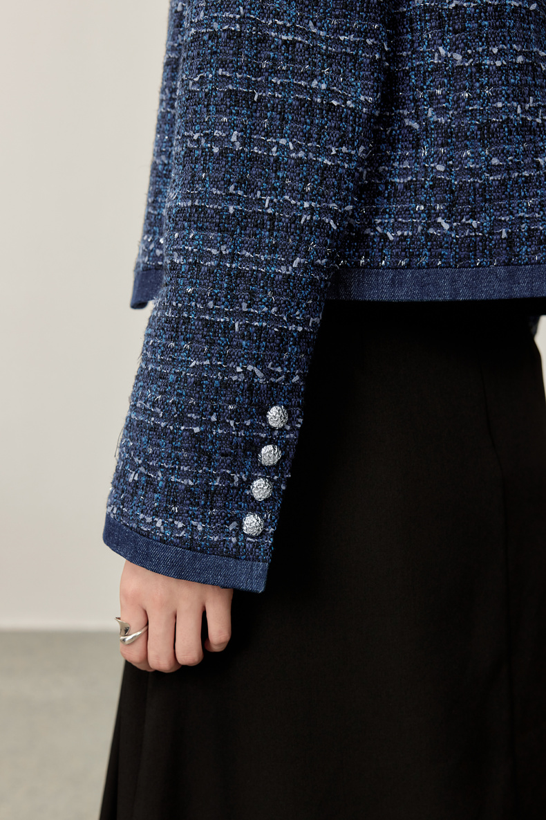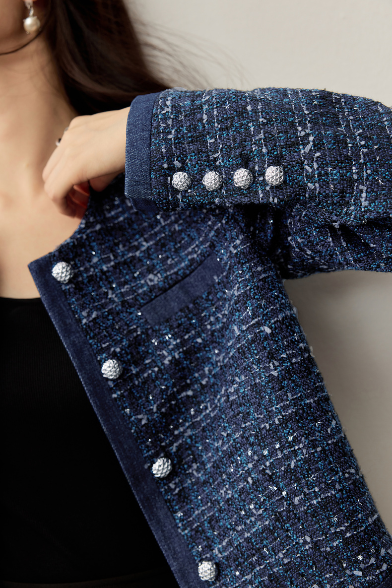 【内购】【含绵羊毛】小香风优雅通勤设计垫肩亮丝花呢短款长袖外套-153W80357