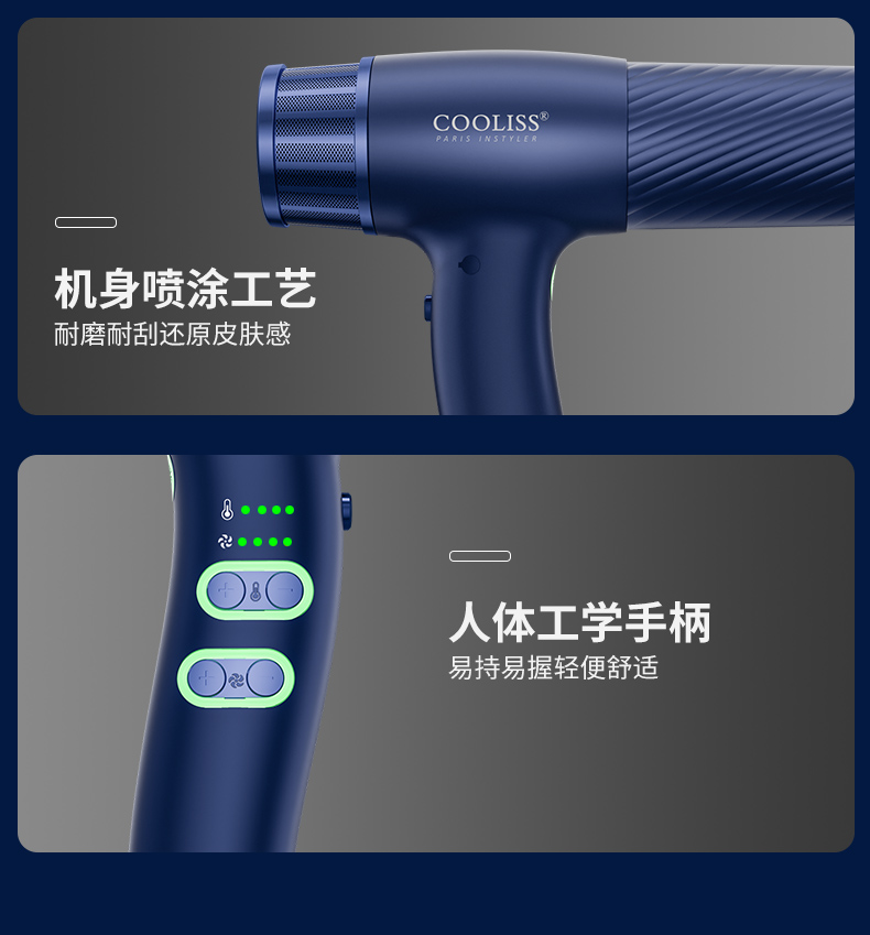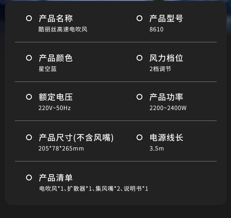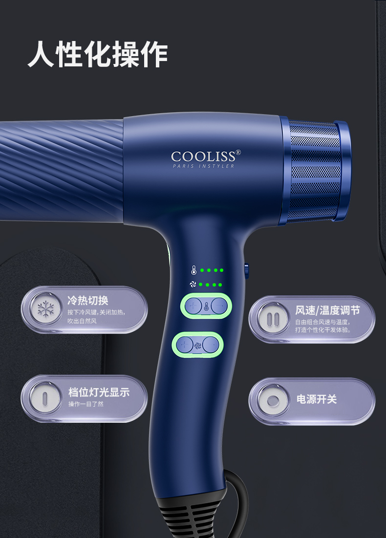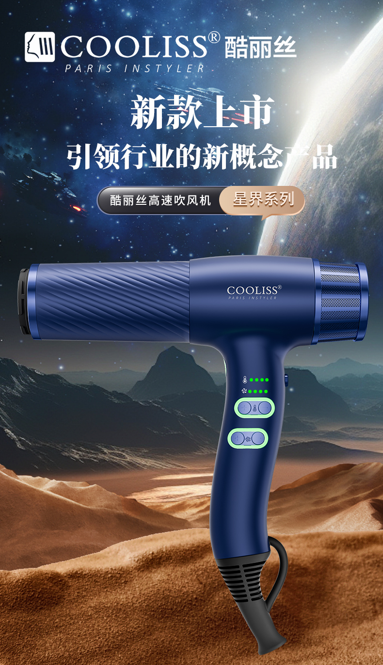 酷丽丝8610星界蓝大风力吹风机造型师专用电吹风机/2200瓦/卷发/大波浪/快吹/吹干/低风/高风/负离子/恒温