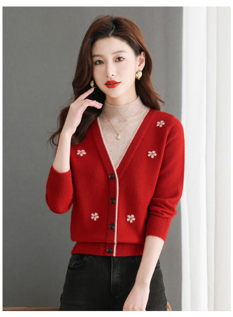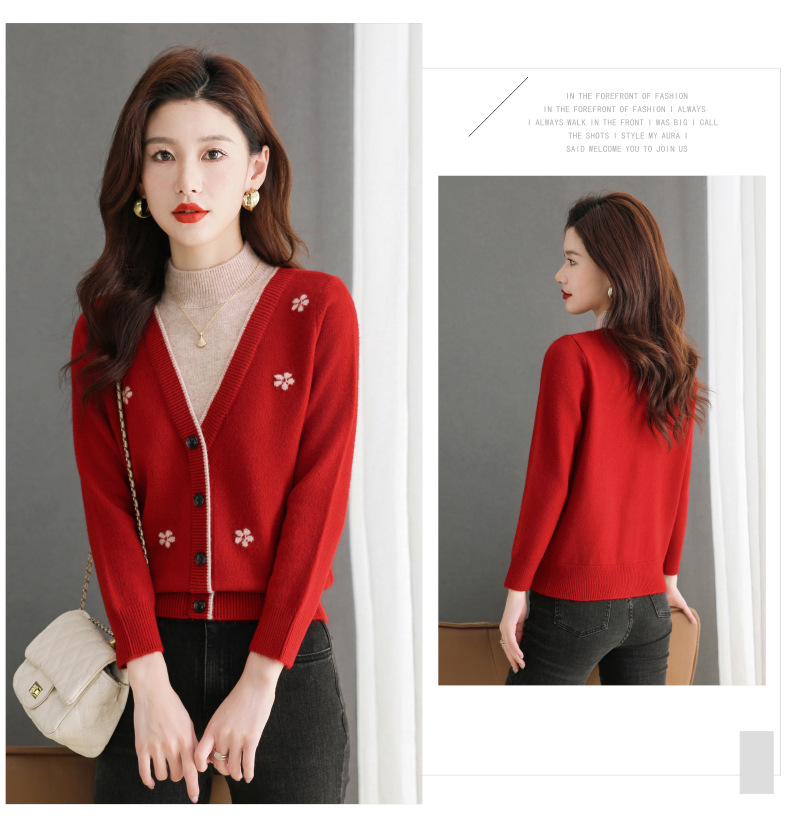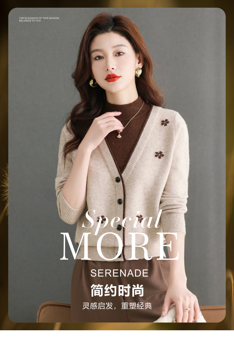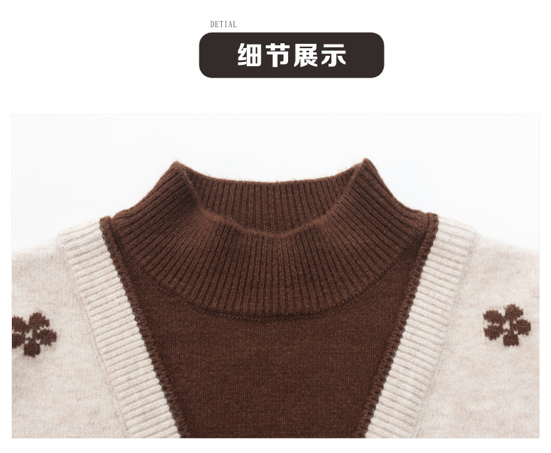 时尚洋气,假两件毛衣女上衣秋冬半高领针织打底衫新款冬装内搭CC-58111