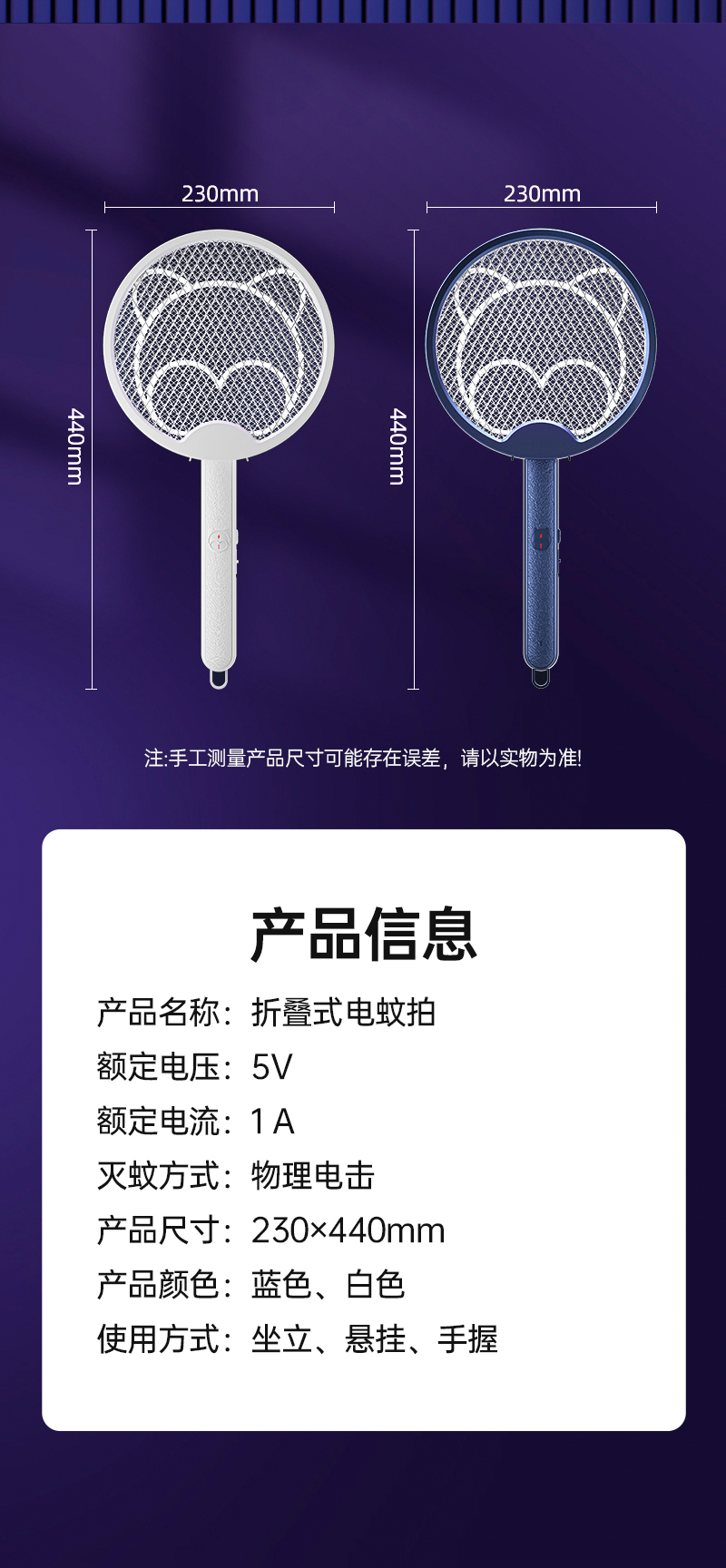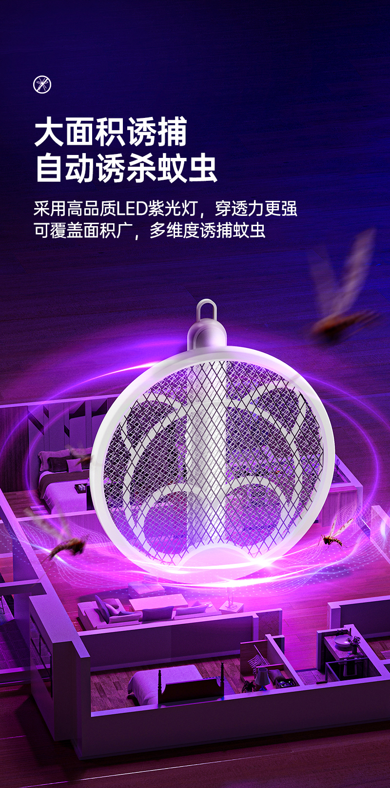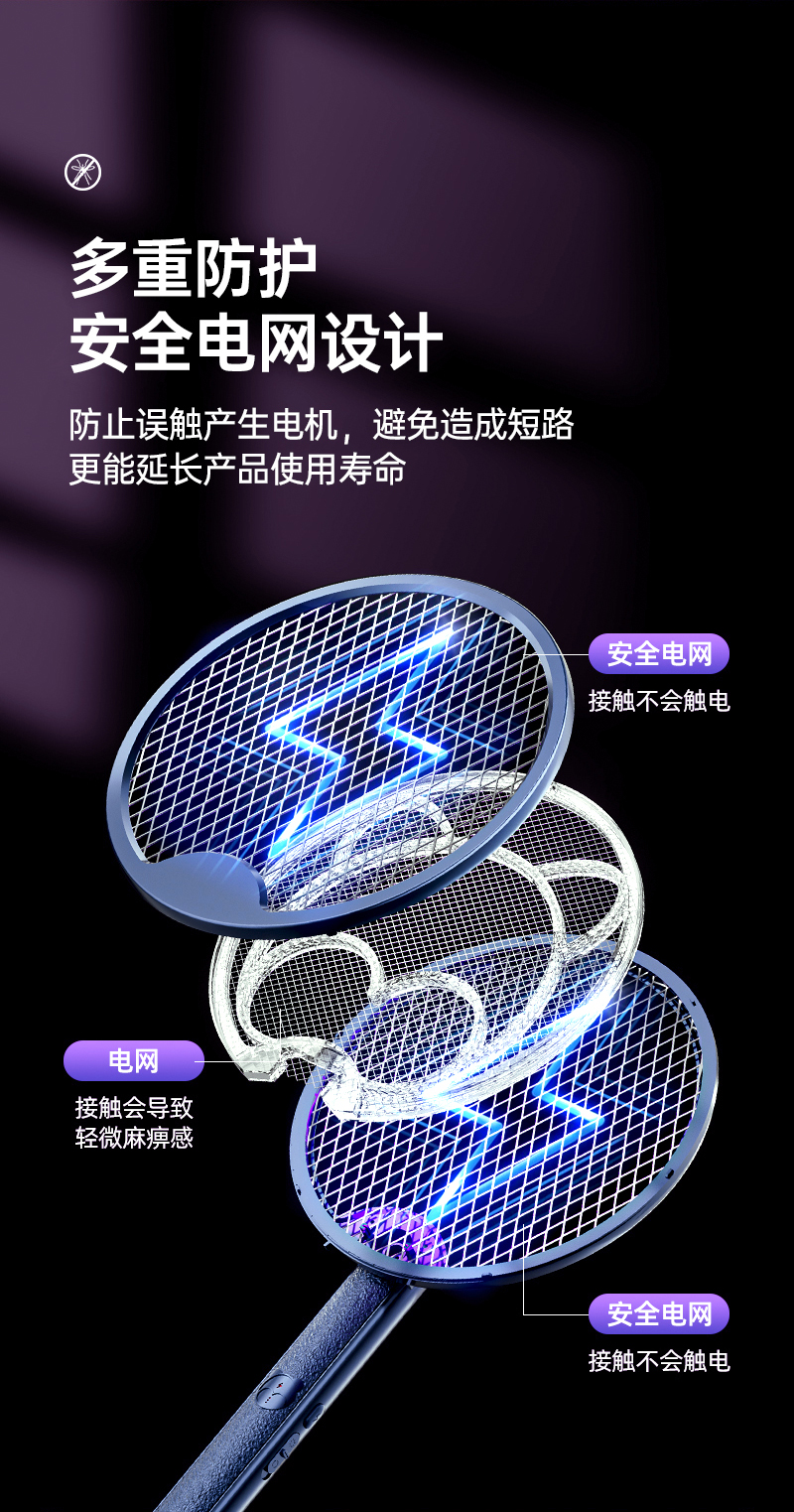 【折叠式电蚊拍】即是电蚊拍也是灭蚊灯 A-4748