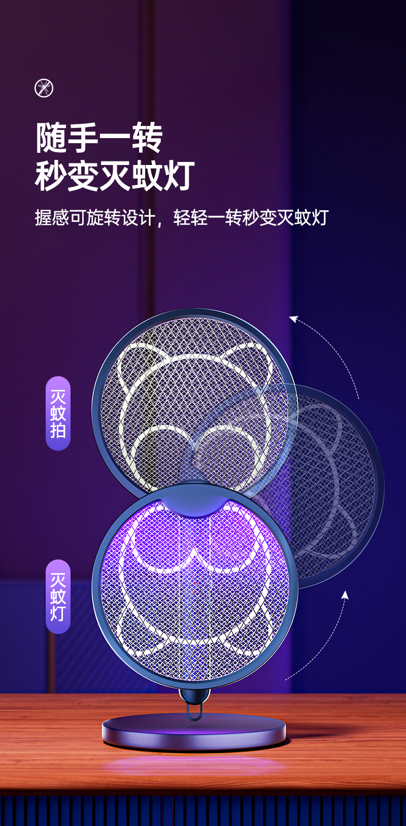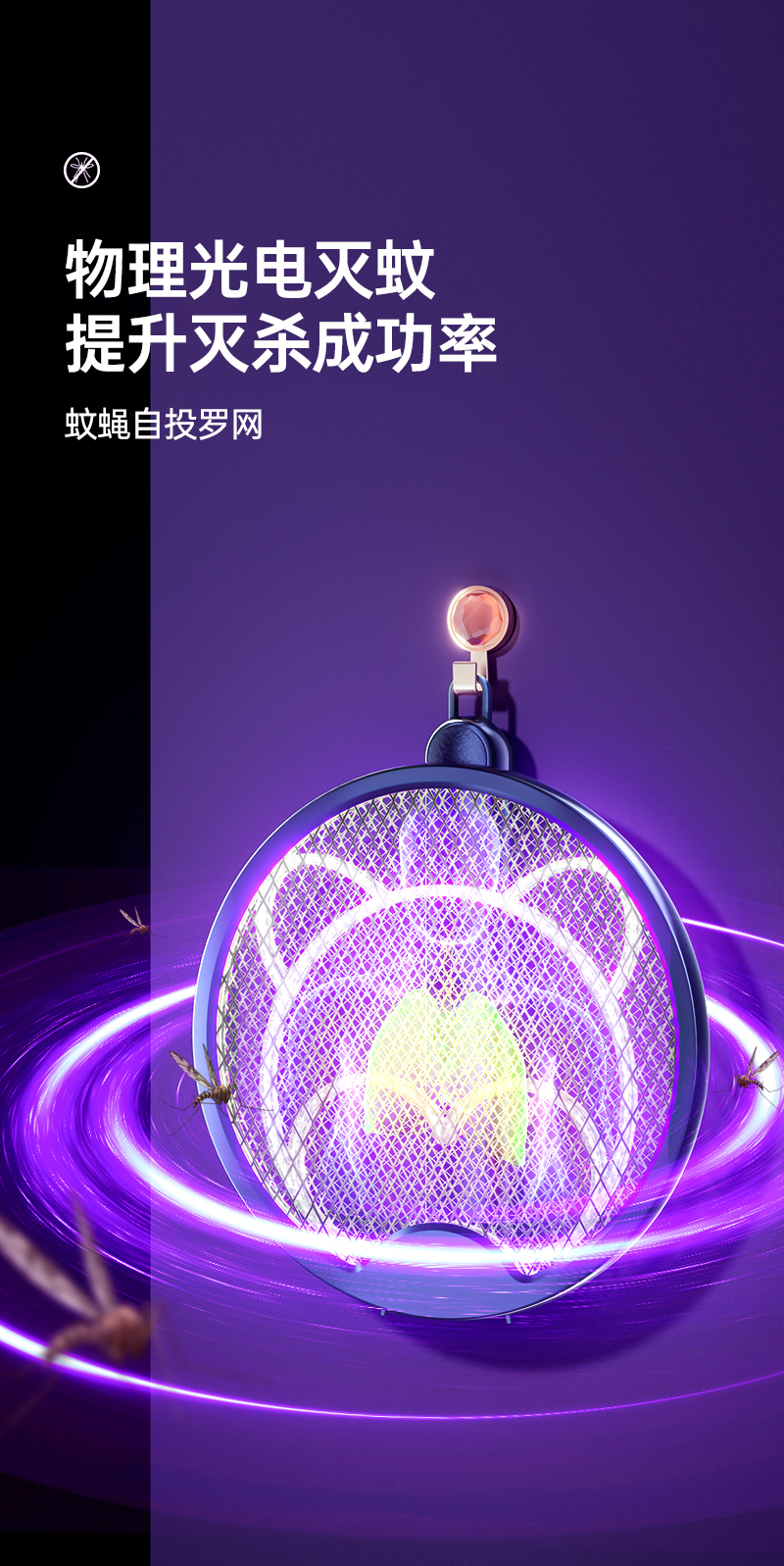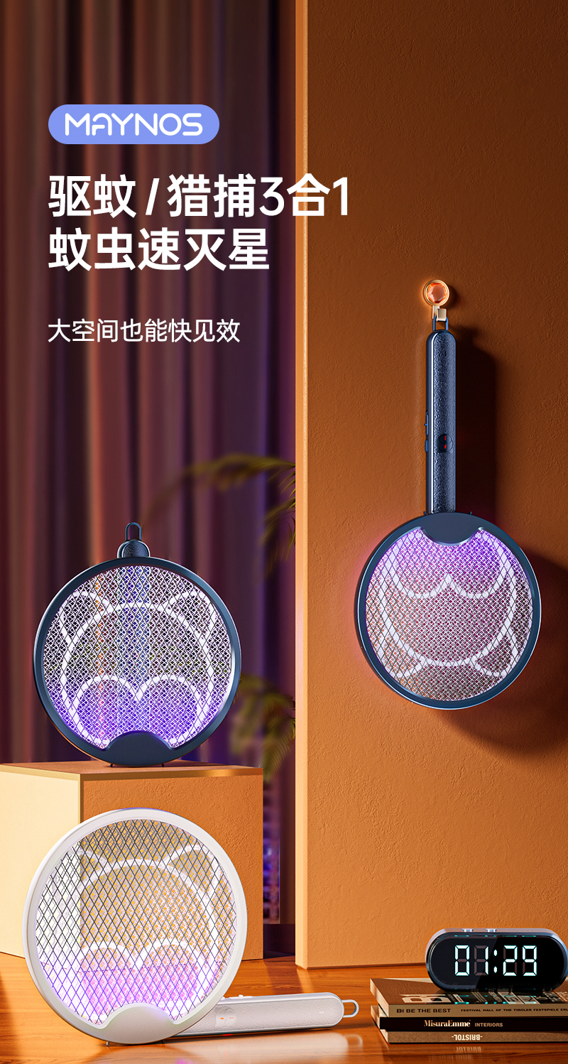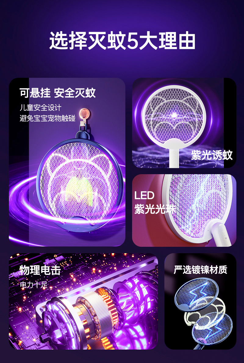 【折叠式电蚊拍】即是电蚊拍也是灭蚊灯 A-4748