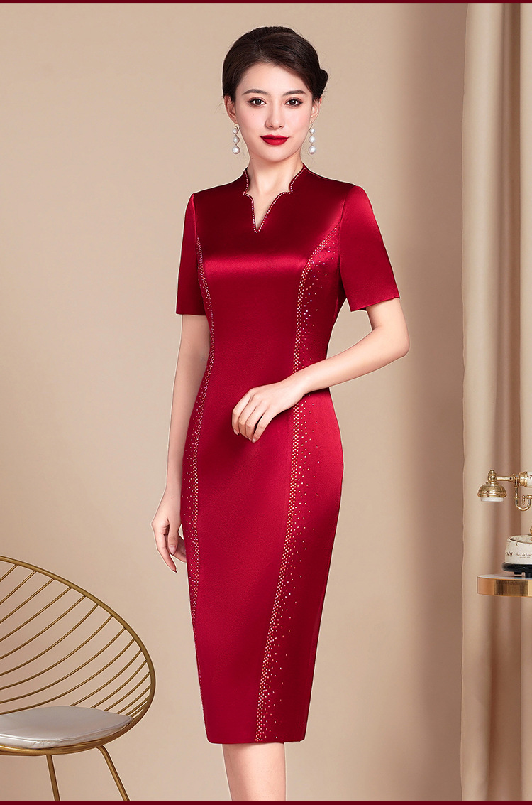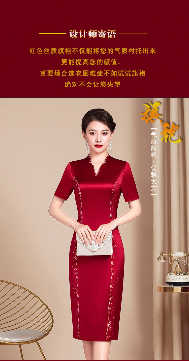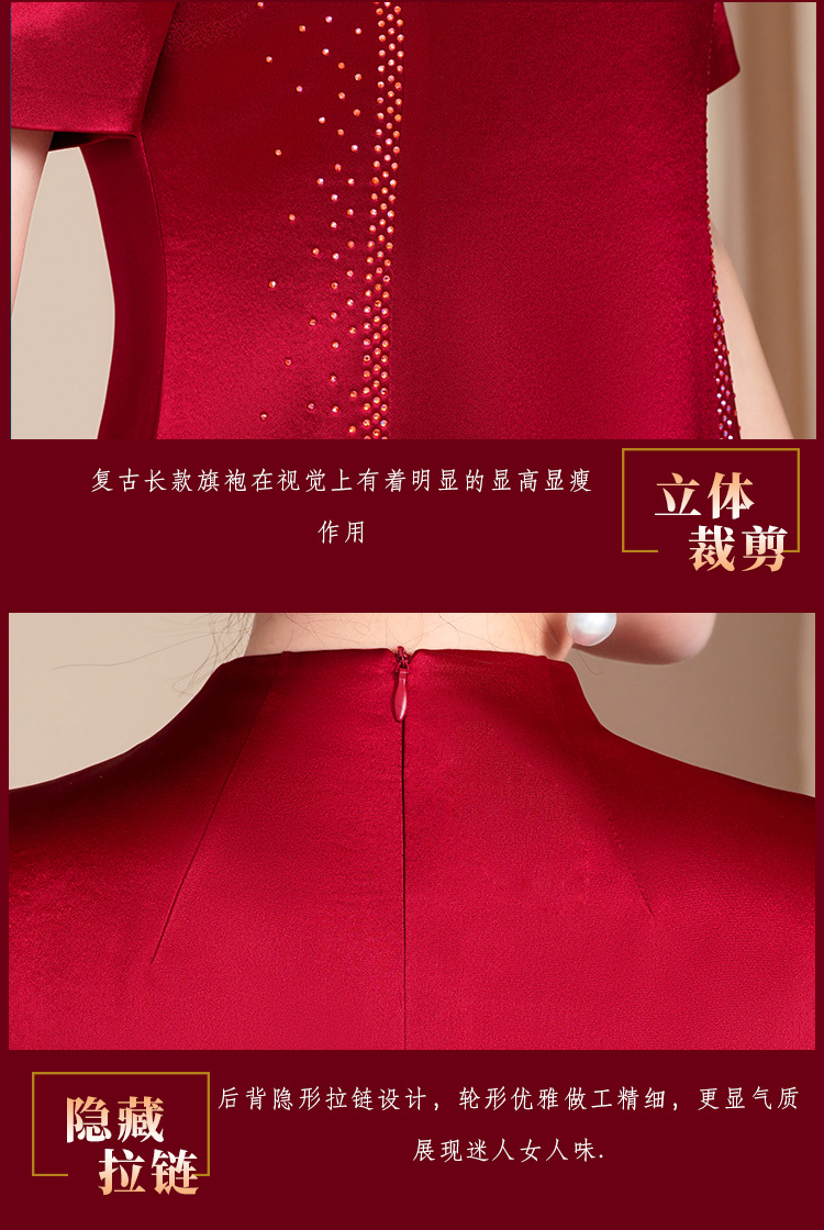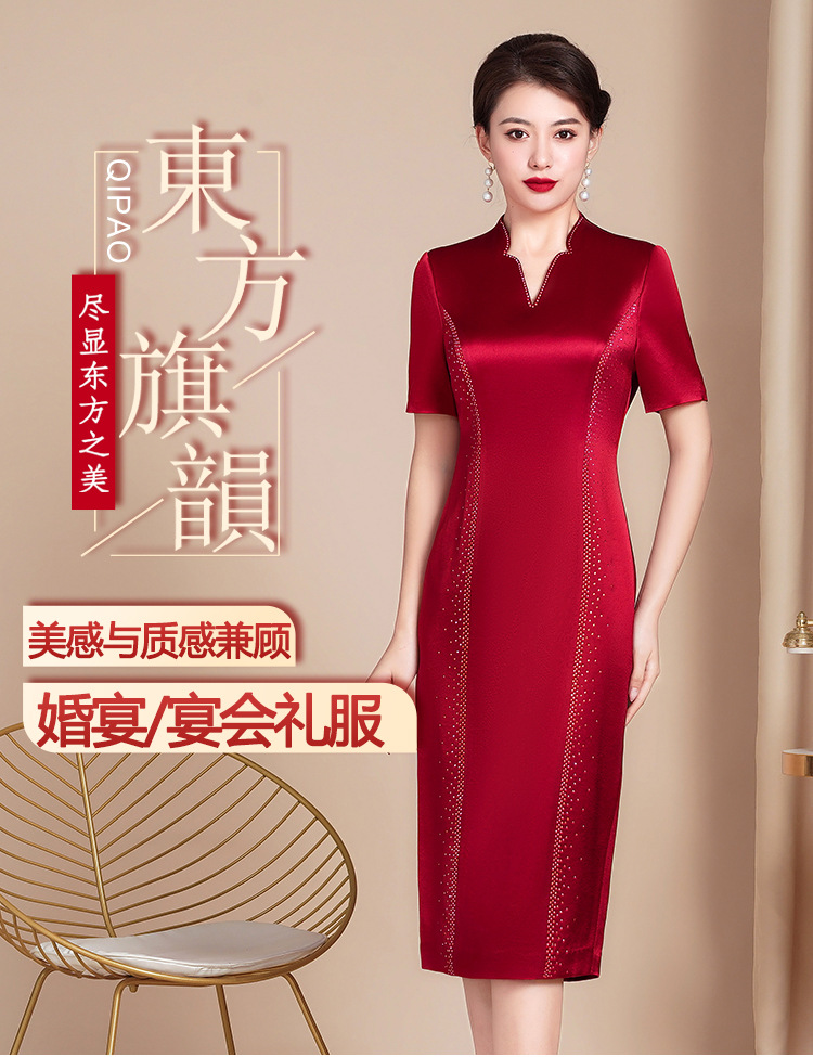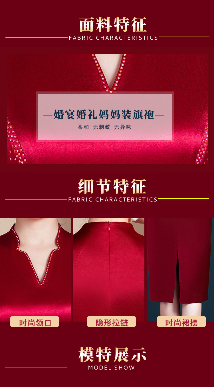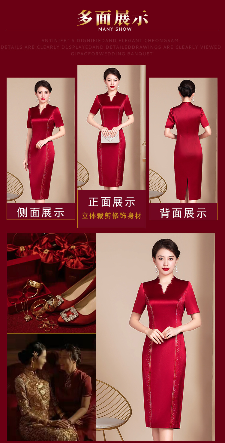 醋酸缎妈妈装婚礼礼服新款喜婆婆婚宴装复古改良旗袍连衣裙WXG-A2299026