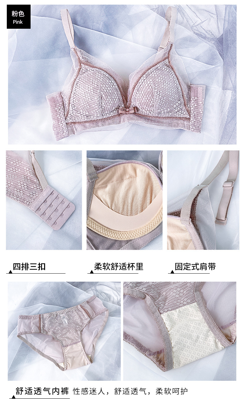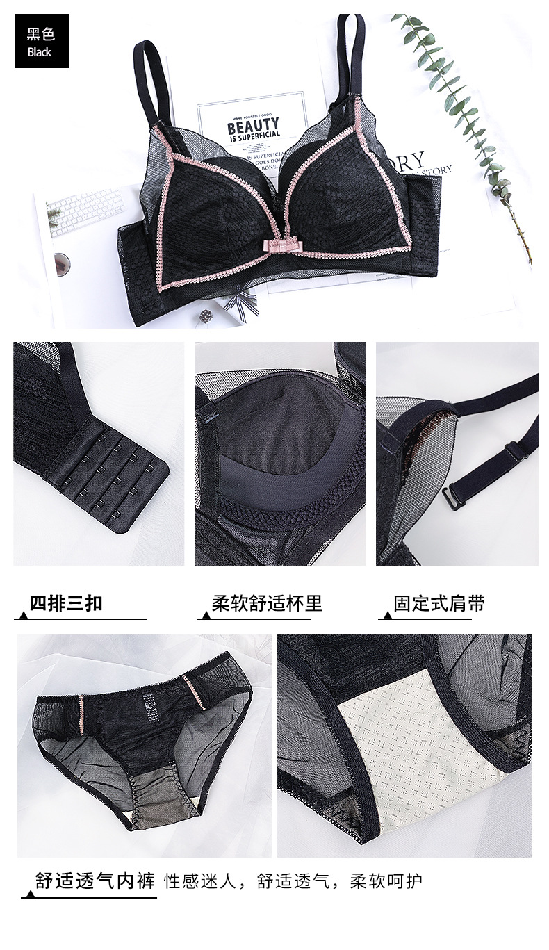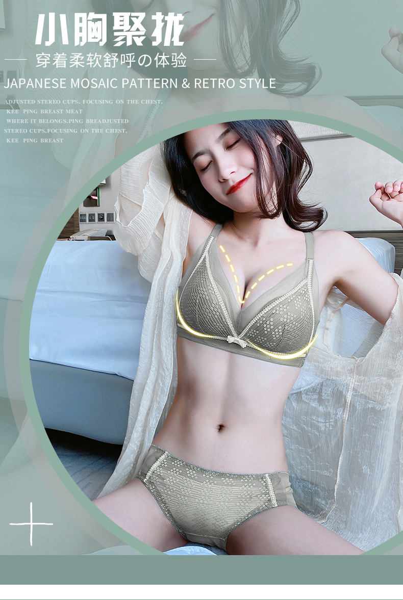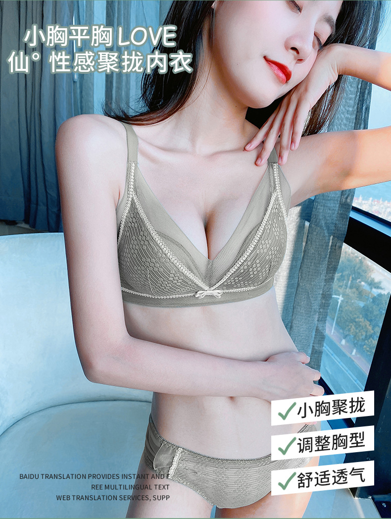 小胸平胸专用文胸罩内裤一套装高品质内衣女聚拢调整型无钢圈性感