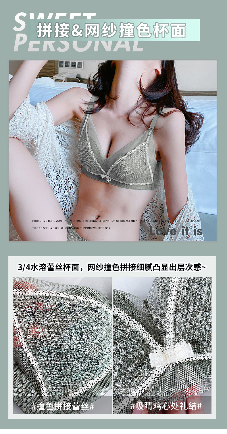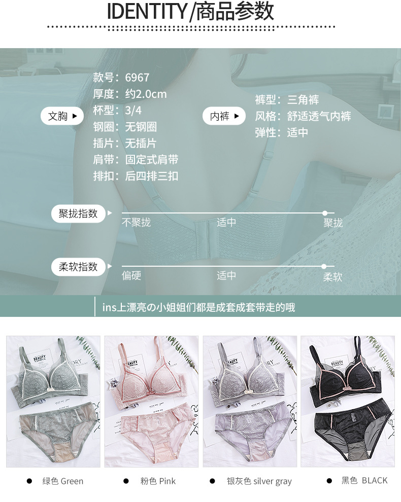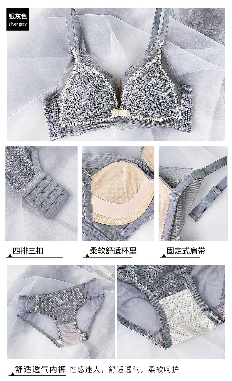 小胸平胸专用文胸罩内裤一套装高品质内衣女聚拢调整型无钢圈性感