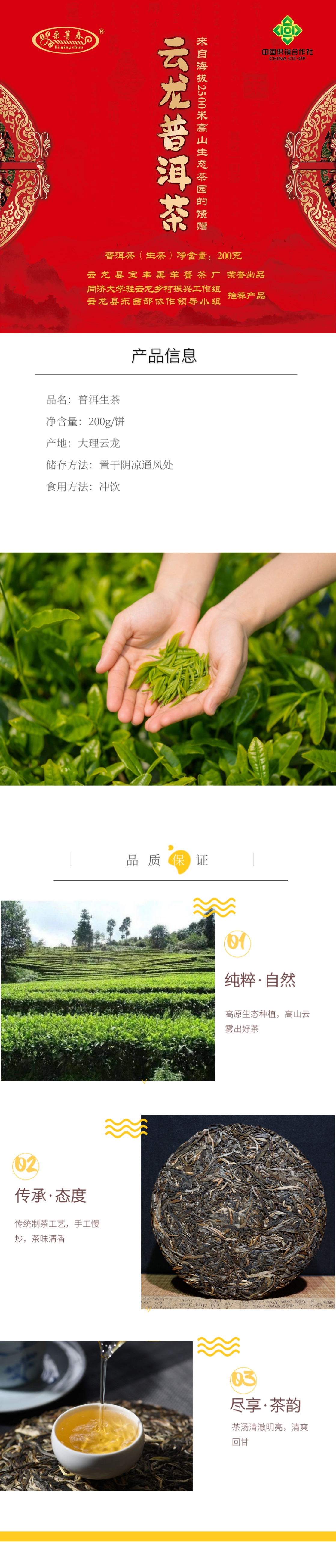 云南大理云龙普洱茶(生茶)200克/饼 商品图1
