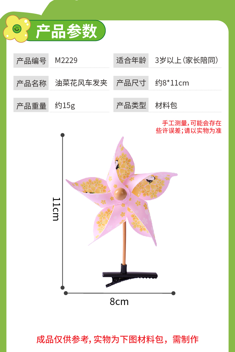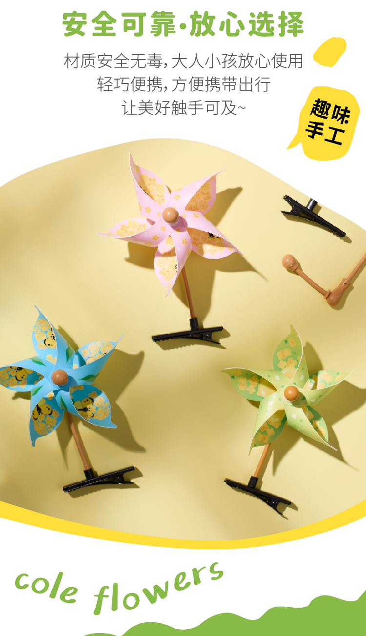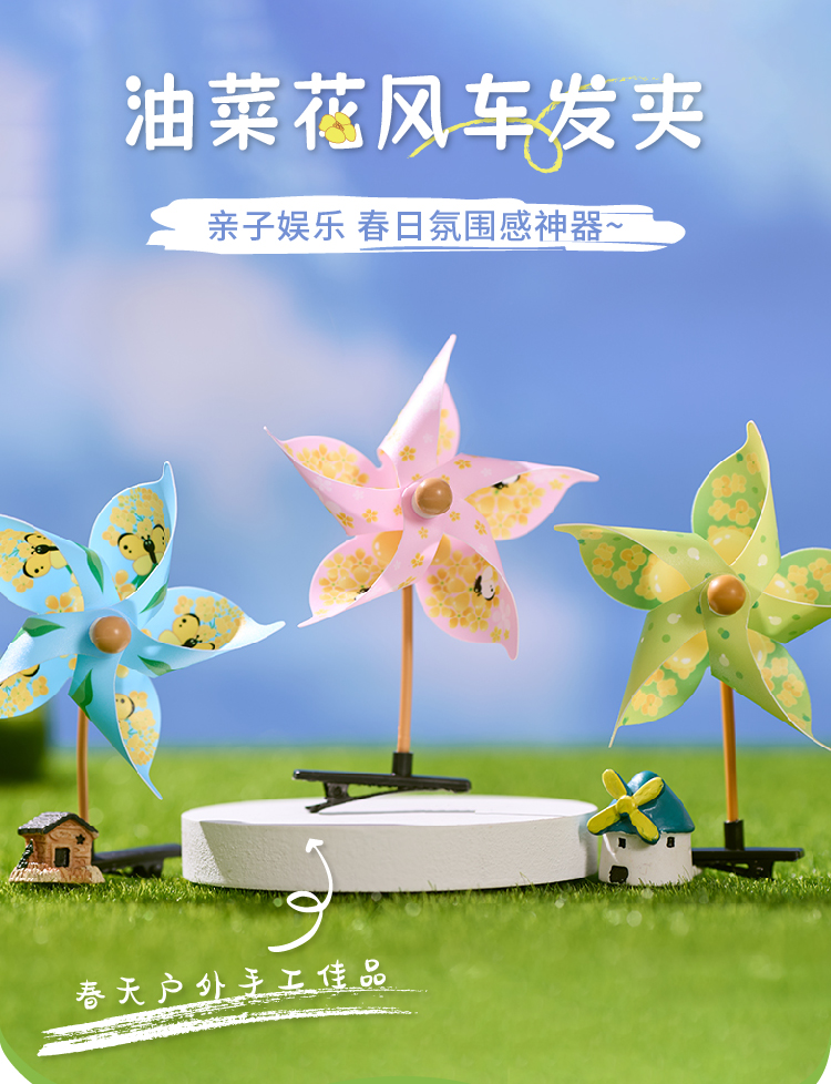 户外春天油菜花风车发夹手工diy头饰装饰品儿童制作材料包幼儿园