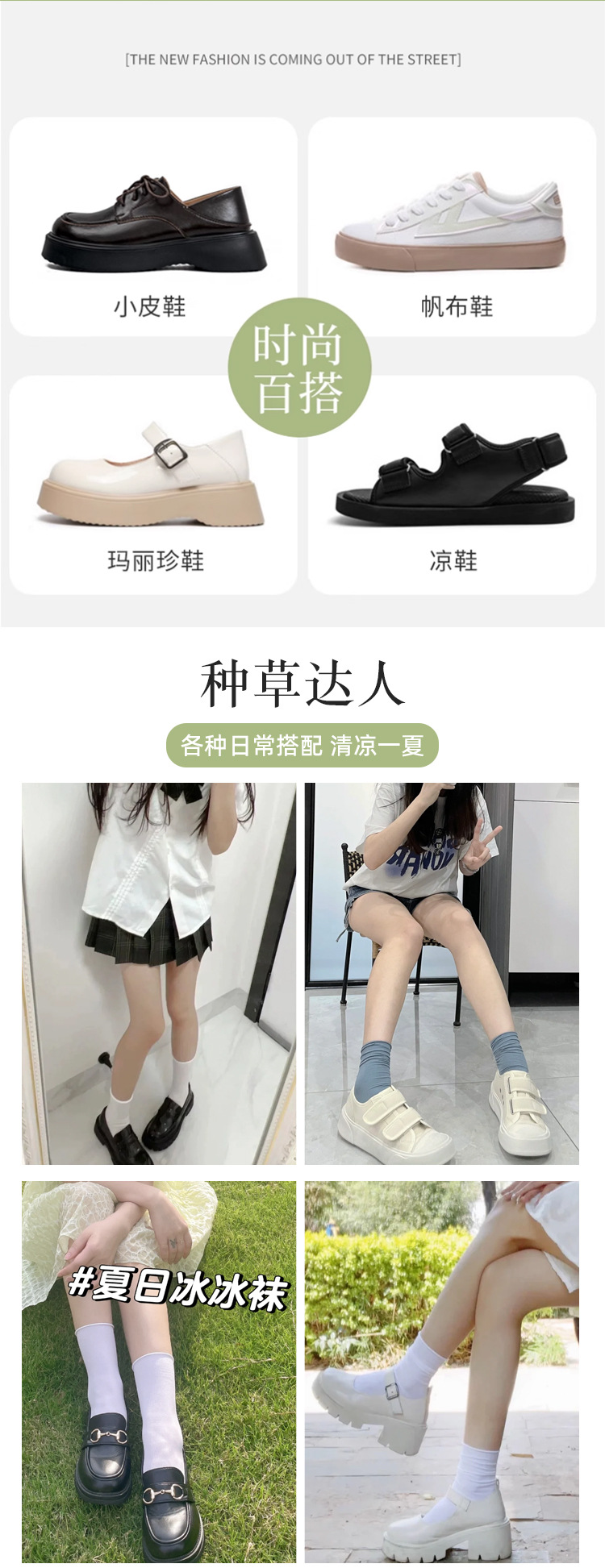 [小滋心选]【活动价 ¥19.9/7双】【夏日清凉神器❄️】一触即凉的冰丝堆堆袜,奶白芋紫任你选,时髦透气还百搭!夏季薄款女冰丝无骨堆堆 批日系透气冰冰袜白色中筒袜