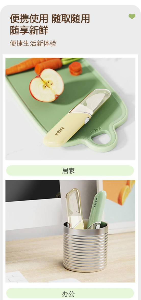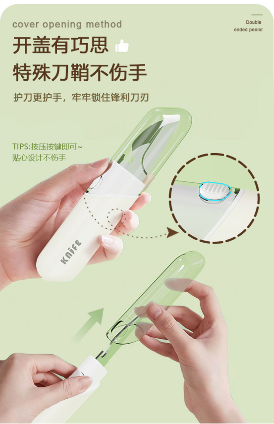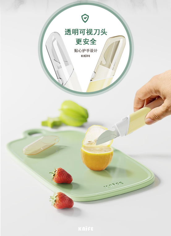 卡扣刀鞘,着重保护,家有宝宝也不怕 力学设计,小巧轻便,好用省力好收纳 饱和彩色,轻松便携,带出去也好看 可视壳保护刀头,更加安全