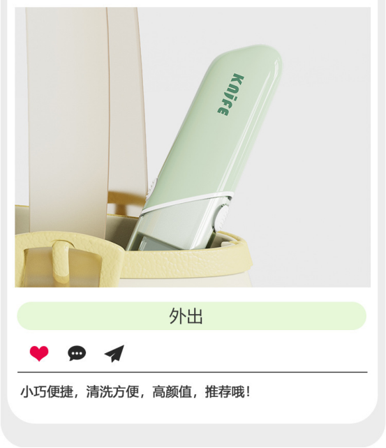 小巧可爱,方便携带 往兜兜一揣,或者往包包一放 不等到用的时候,都想不起来自己带它出来了! 护手刀鞘+卡扣设计 不怕割手误伤! 而且卡扣设计不怕宝宝误碰 安全力max!
