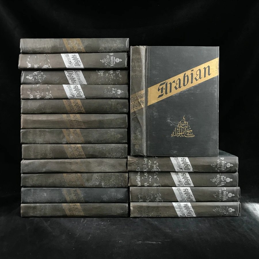限量版有编号!书顶鎏金毛边本!约20世纪早期 理查德·伯顿译本《一千零一夜》(全17卷) 数十幅插图 漆布精装18开