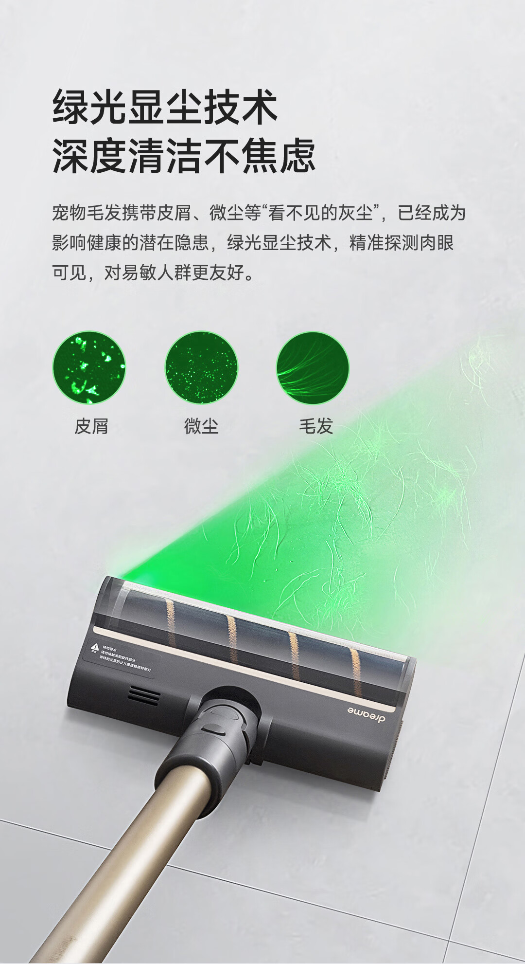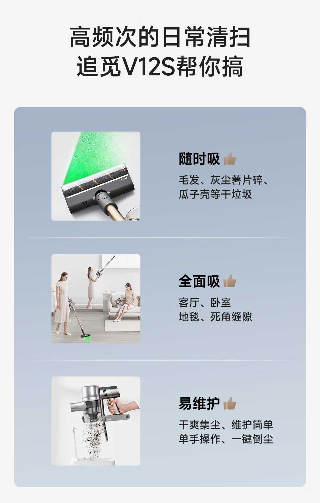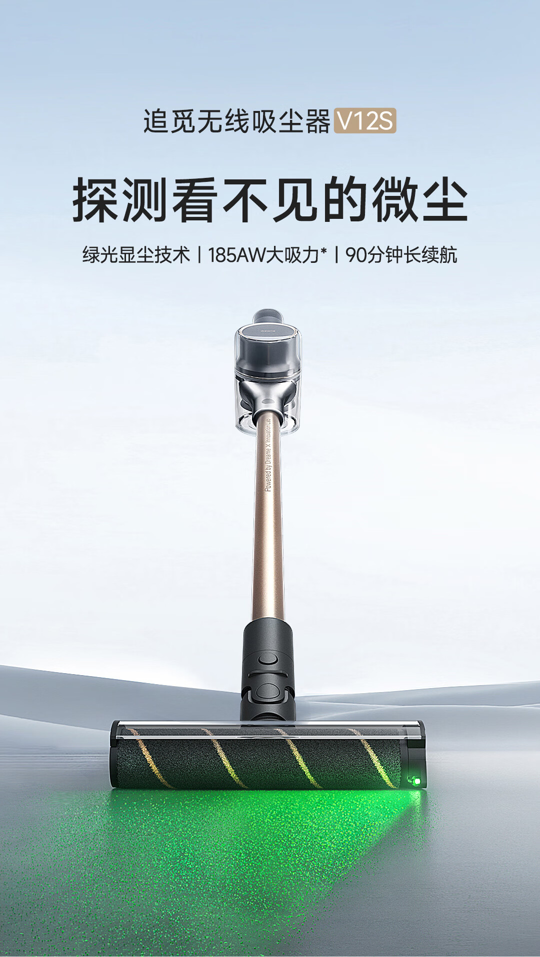 追觅吸尘器V12S 家用无线手持 185AW大吸力 90分钟长续航 绿光显尘