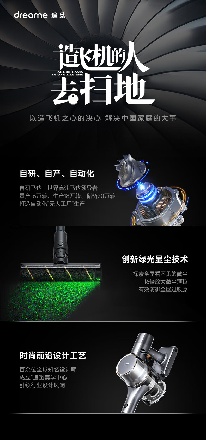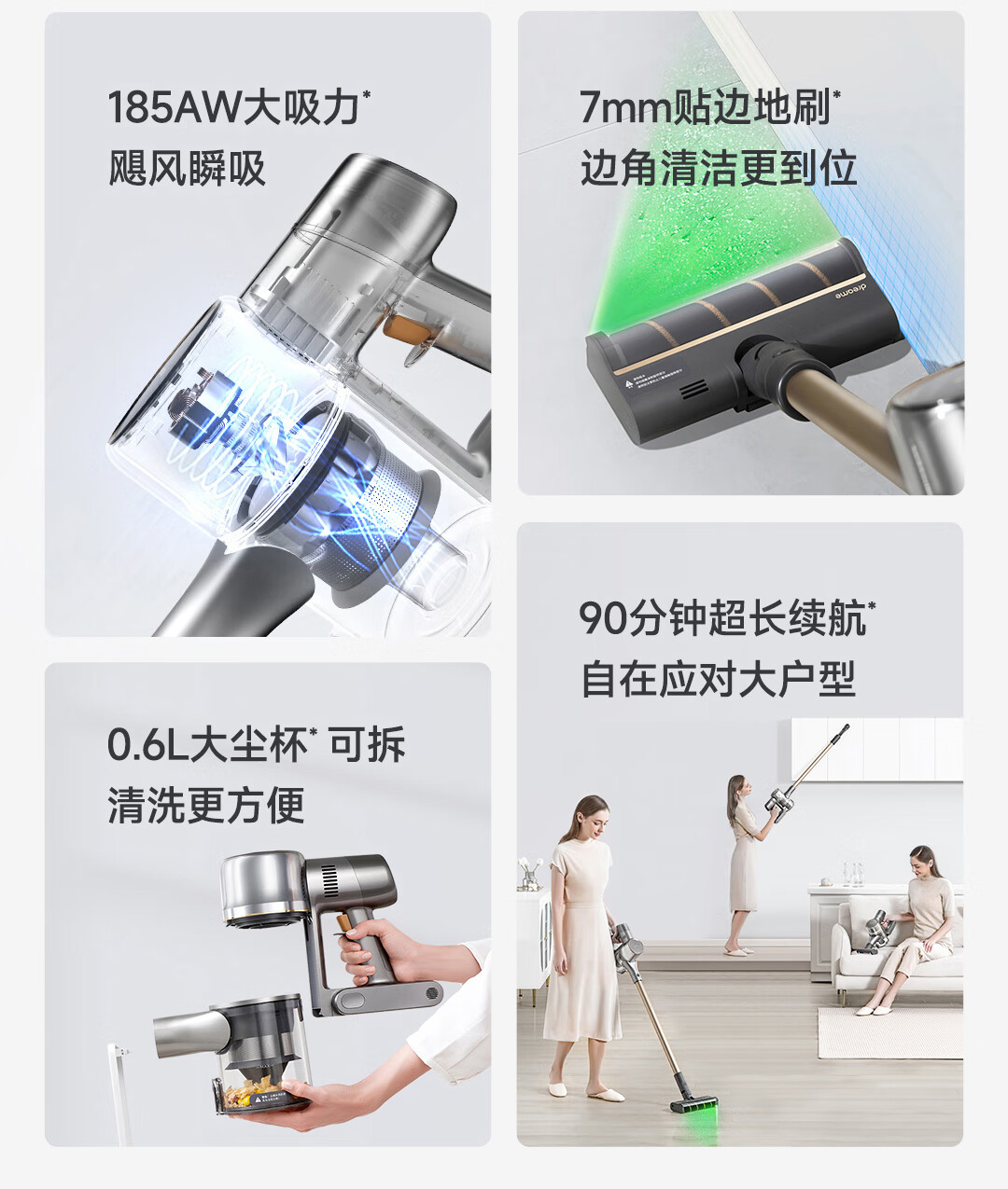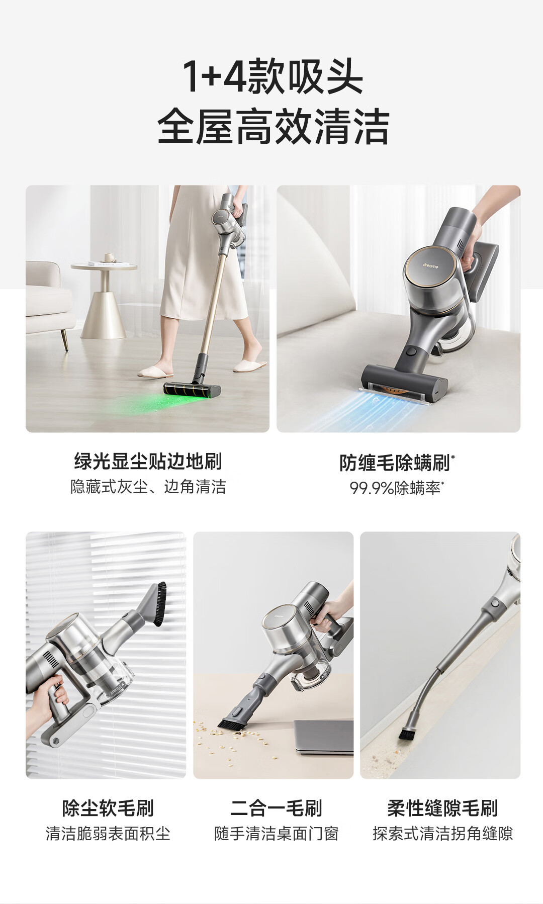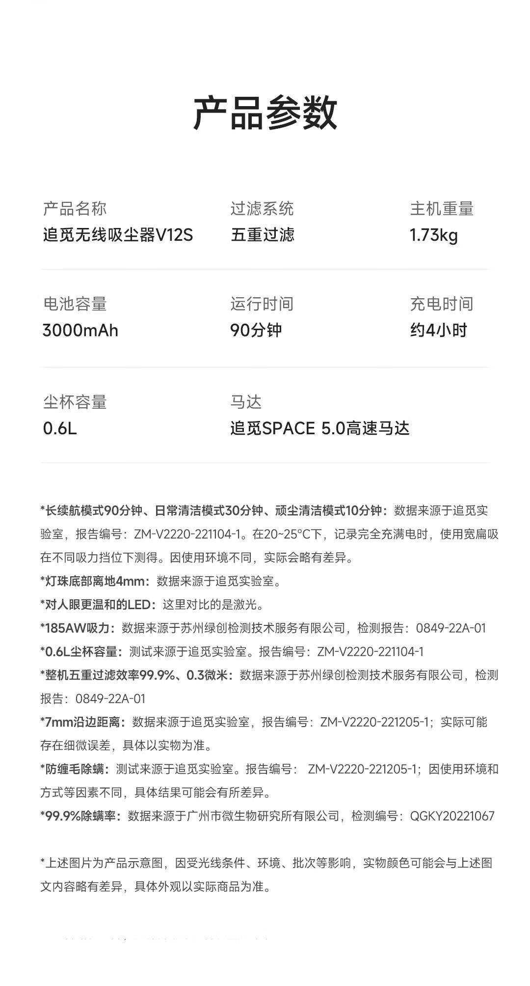 追觅吸尘器V12S 家用无线手持 185AW大吸力 90分钟长续航 绿光显尘