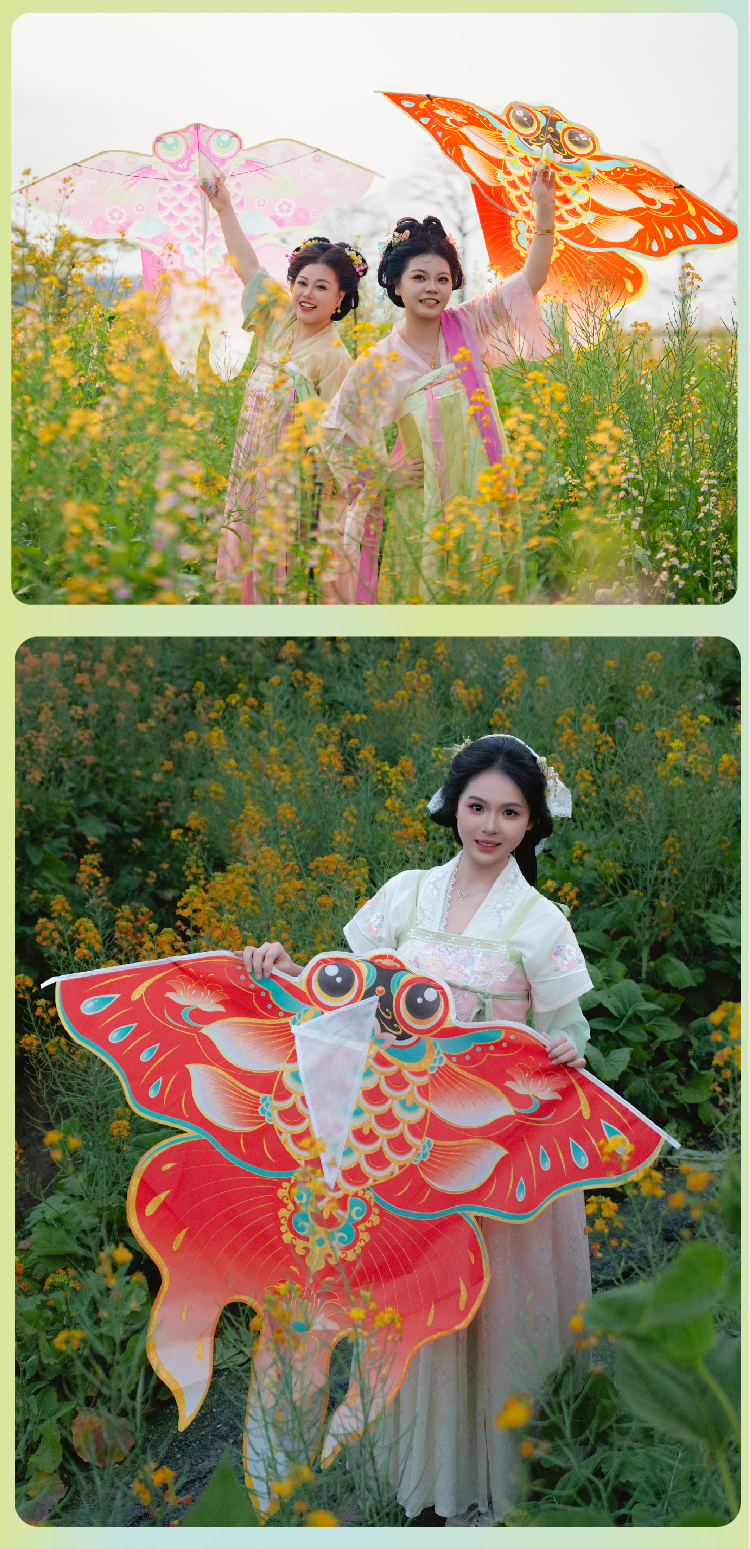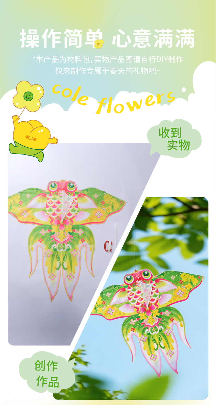户外春天踏青国潮金鱼装扮风筝手工diy儿童纸鸢制作材料团建活动