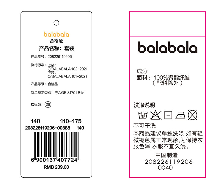 【balaOne】巴拉巴拉儿童短袖套装女童男童大童两件套2026新款夏