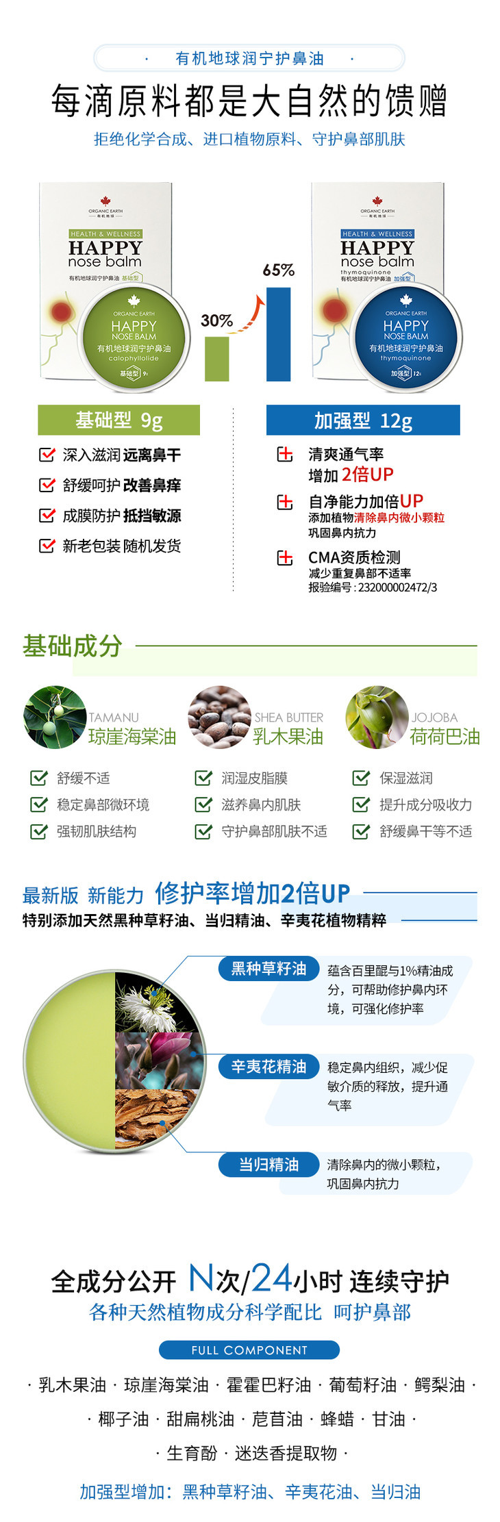 【守护鼻部 无惧花粉柳絮】有机地球Organic Earth润宁护鼻油9g 基础款加强款 流鼻涕打喷嚏鼻塞鼻痒鼻干堵塞通气 拒绝化学合成 进口植物原料守护鼻部肌肤