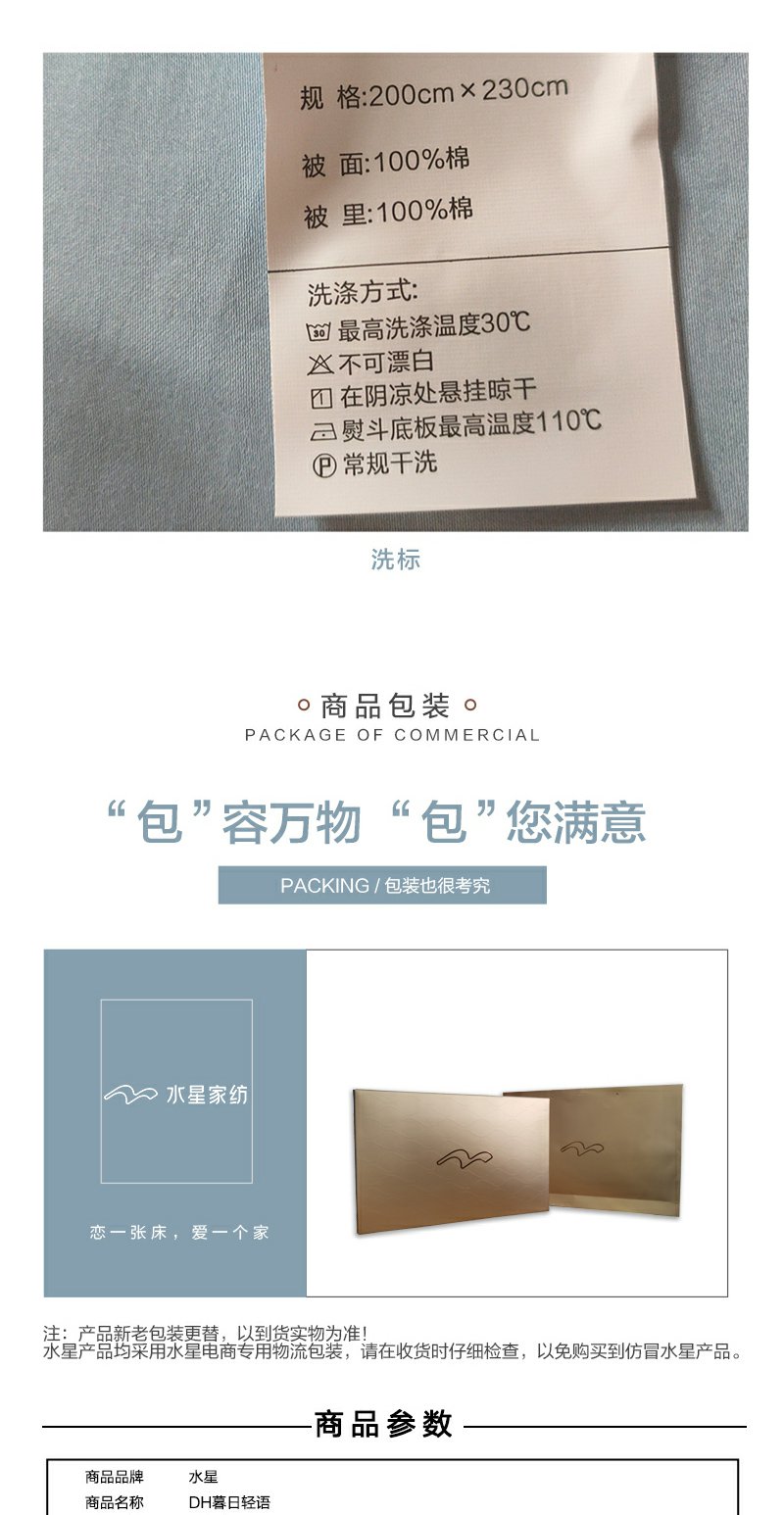 水星家纺长绒棉抗菌四件套 – 暮日轻语