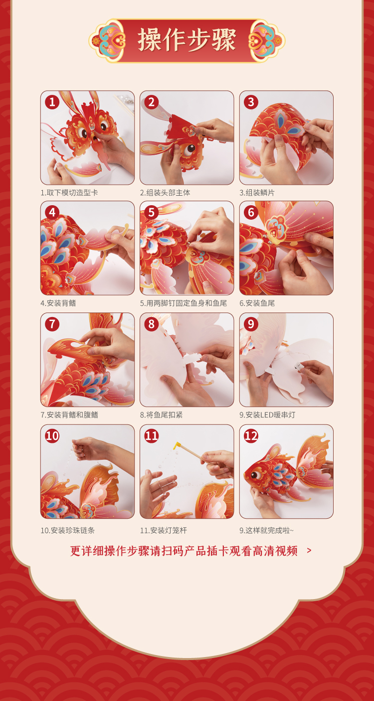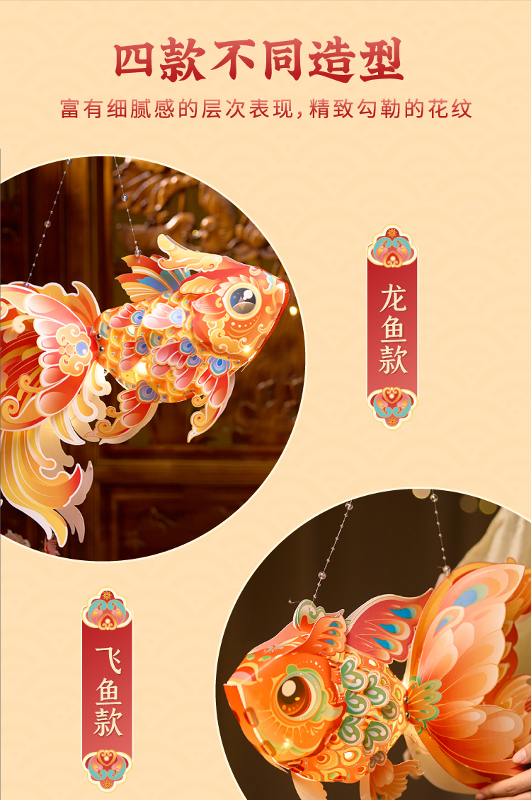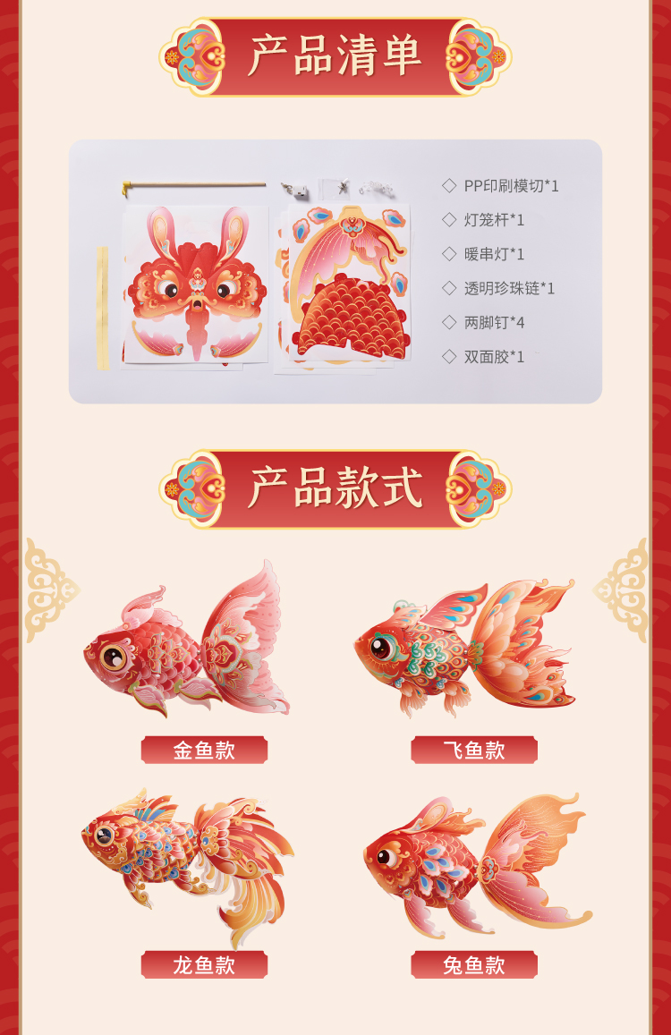 【MEIKE新年】新年春节元旦蛇年非遗玲珑鱼灯手工diy制作材料儿童花灯金鱼灯笼
