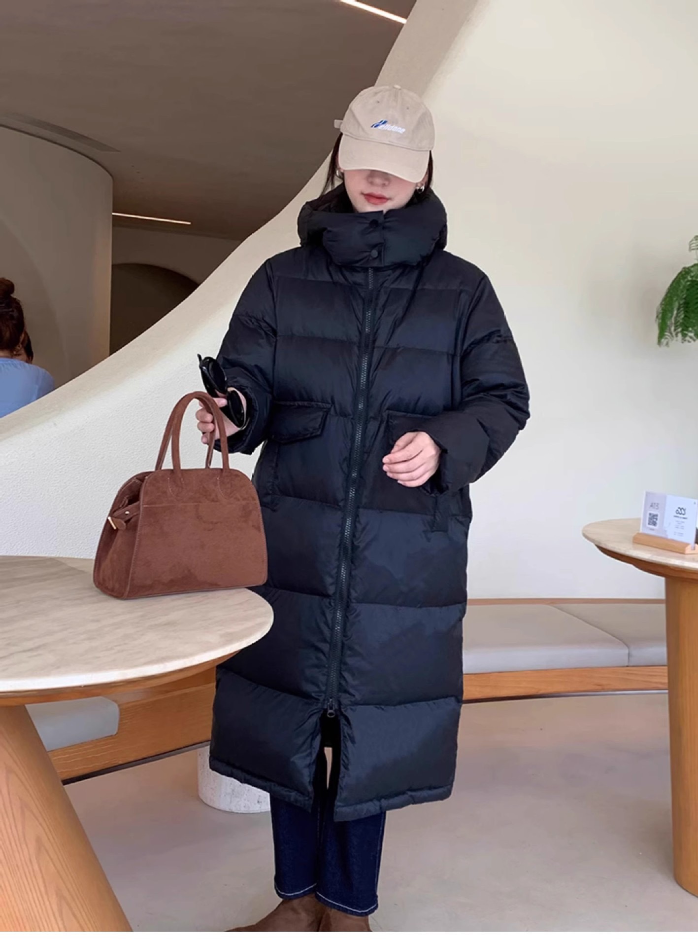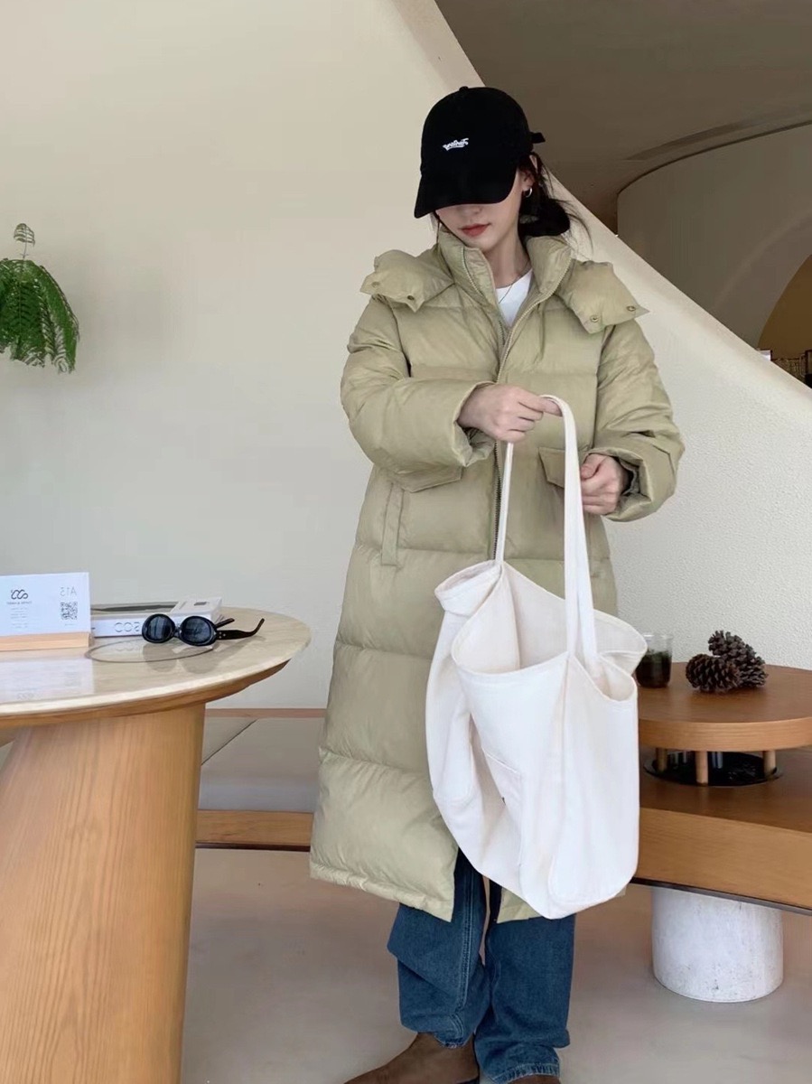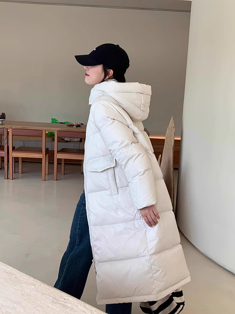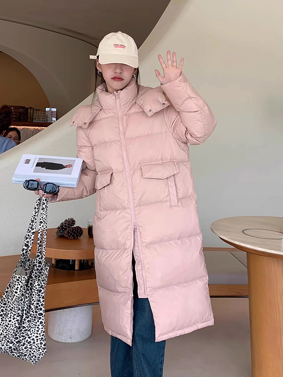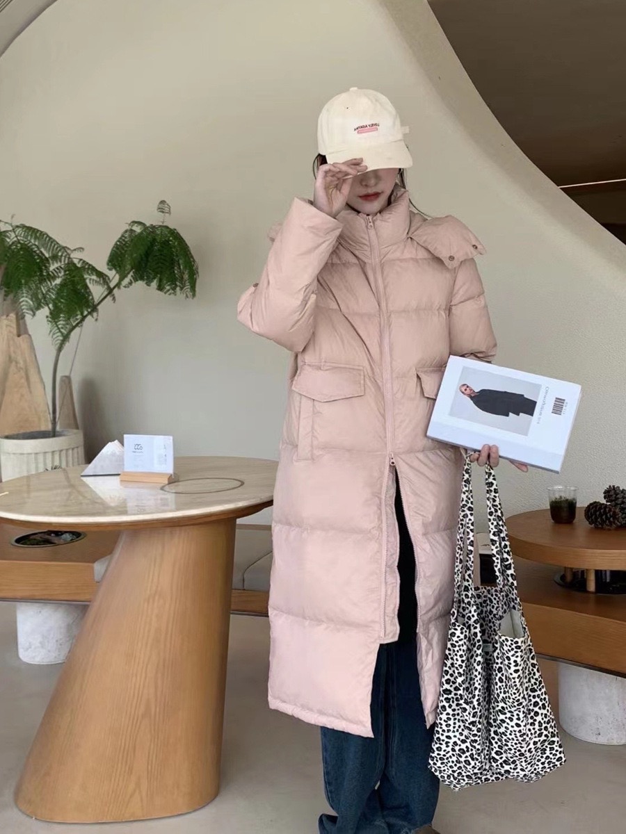 【YW】无忧购【双12暖冬宠粉日】韩系甜美长款过膝小个子休闲宽松连帽羽绒服外套8377