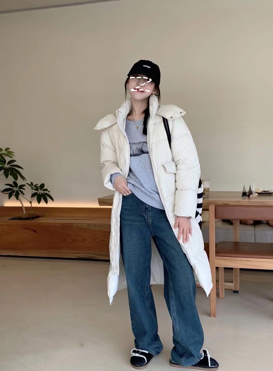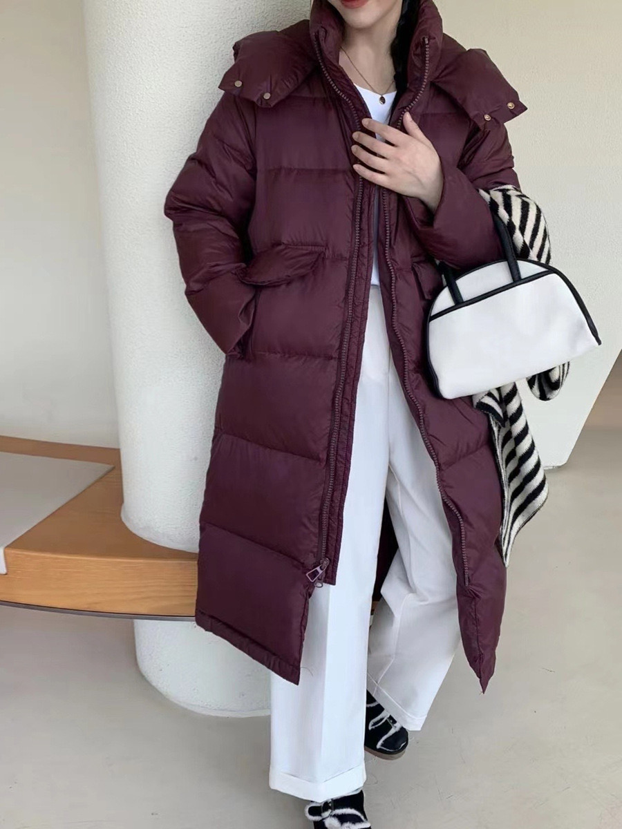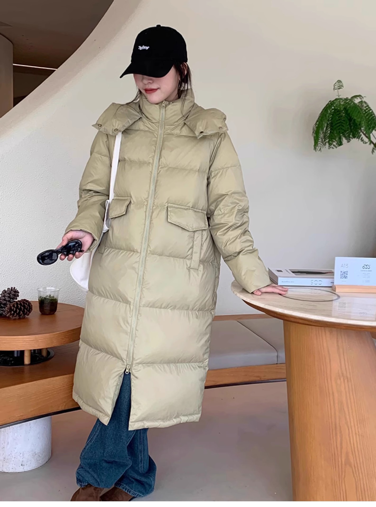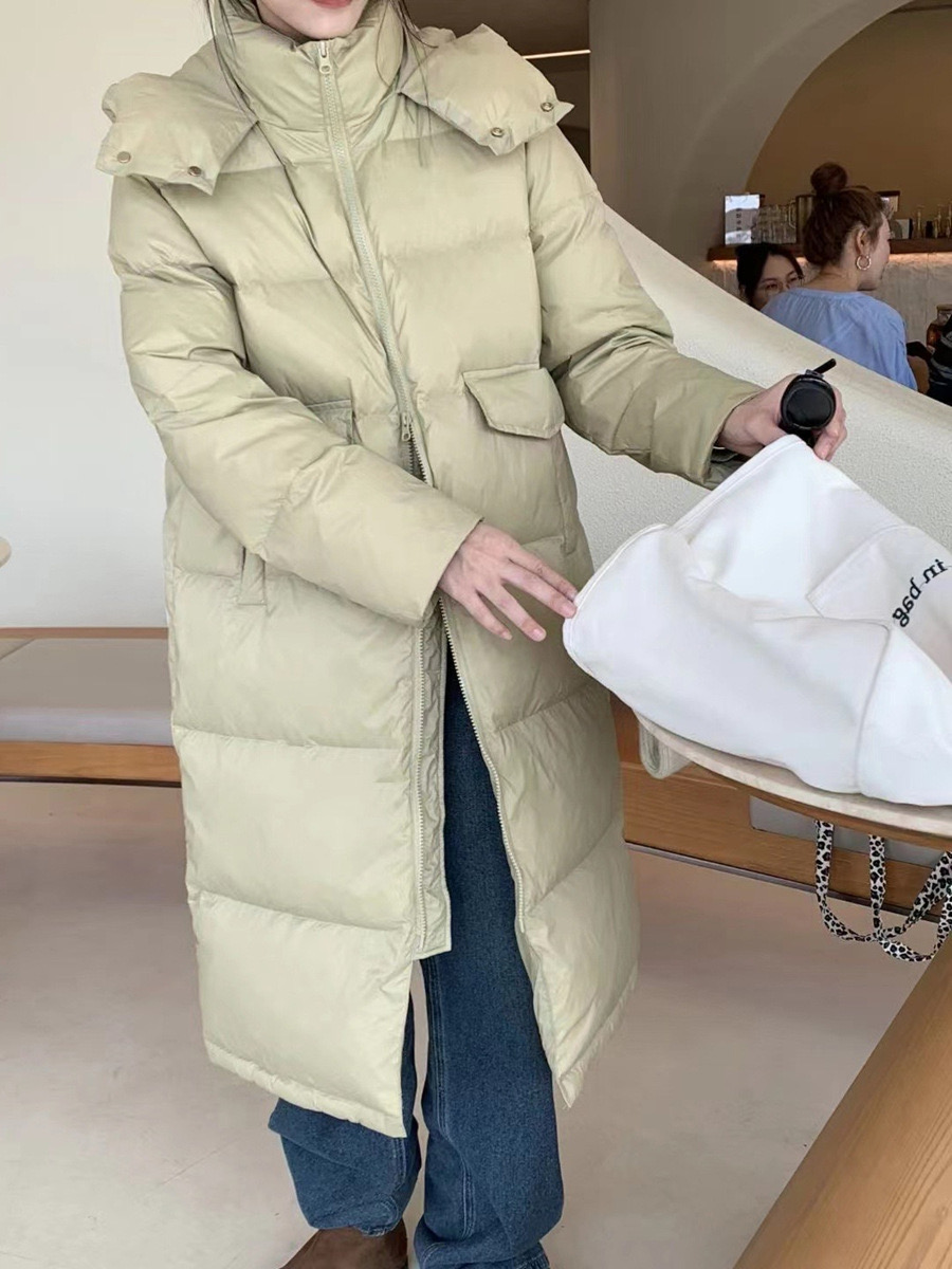 【YW】无忧购【双12暖冬宠粉日】韩系甜美长款过膝小个子休闲宽松连帽羽绒服外套8377