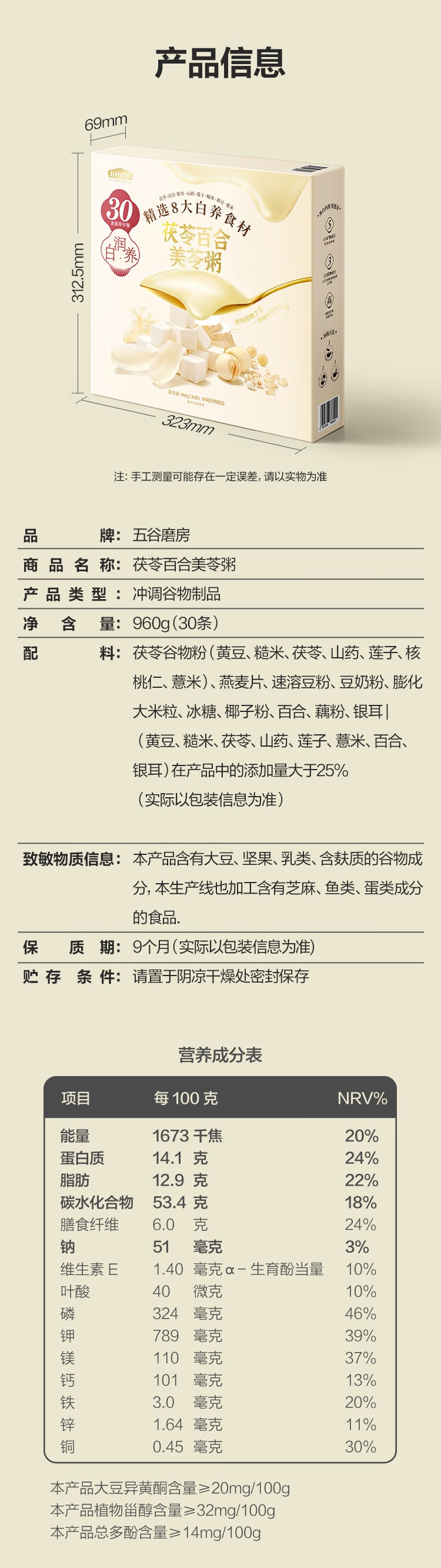【山姆限定】五谷磨房 茯苓百合美苓粥 32g/小袋