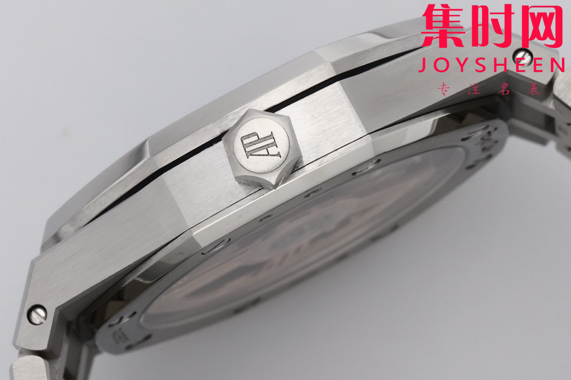 【表身】41mm的表壳,经过精心的拉丝与缎面打磨润饰,线条硬朗流畅,八角形表圈搭配八颗醒目的六角形螺丝,标志性的设计元素,辨识度爆表,尽显工业美学与格械质感的碰撞融合。表表采用渐薄工艺,贴合手腕曲线,佩戴舒适自在。表扣开合流畅,细节之处尽显匠心。