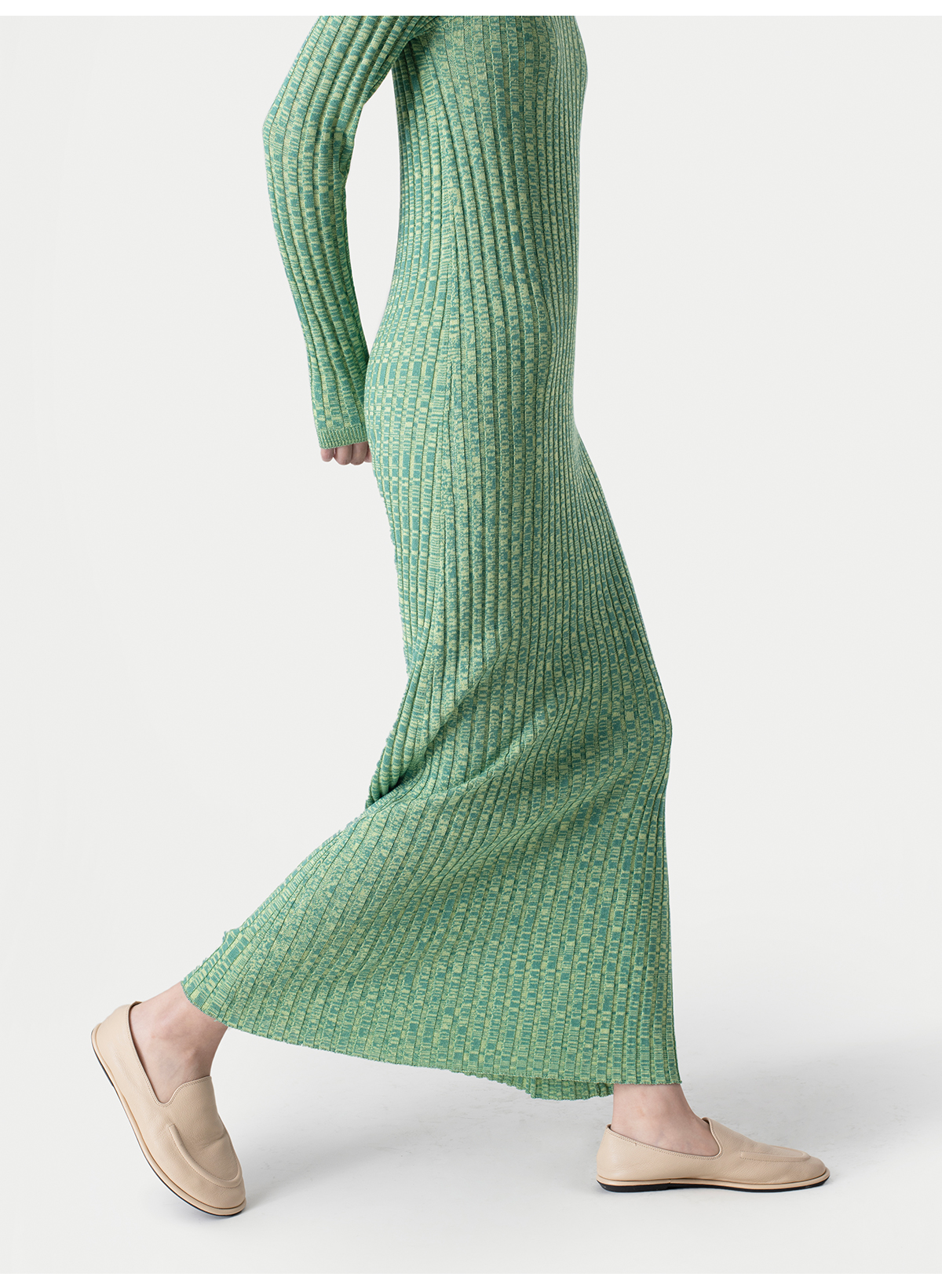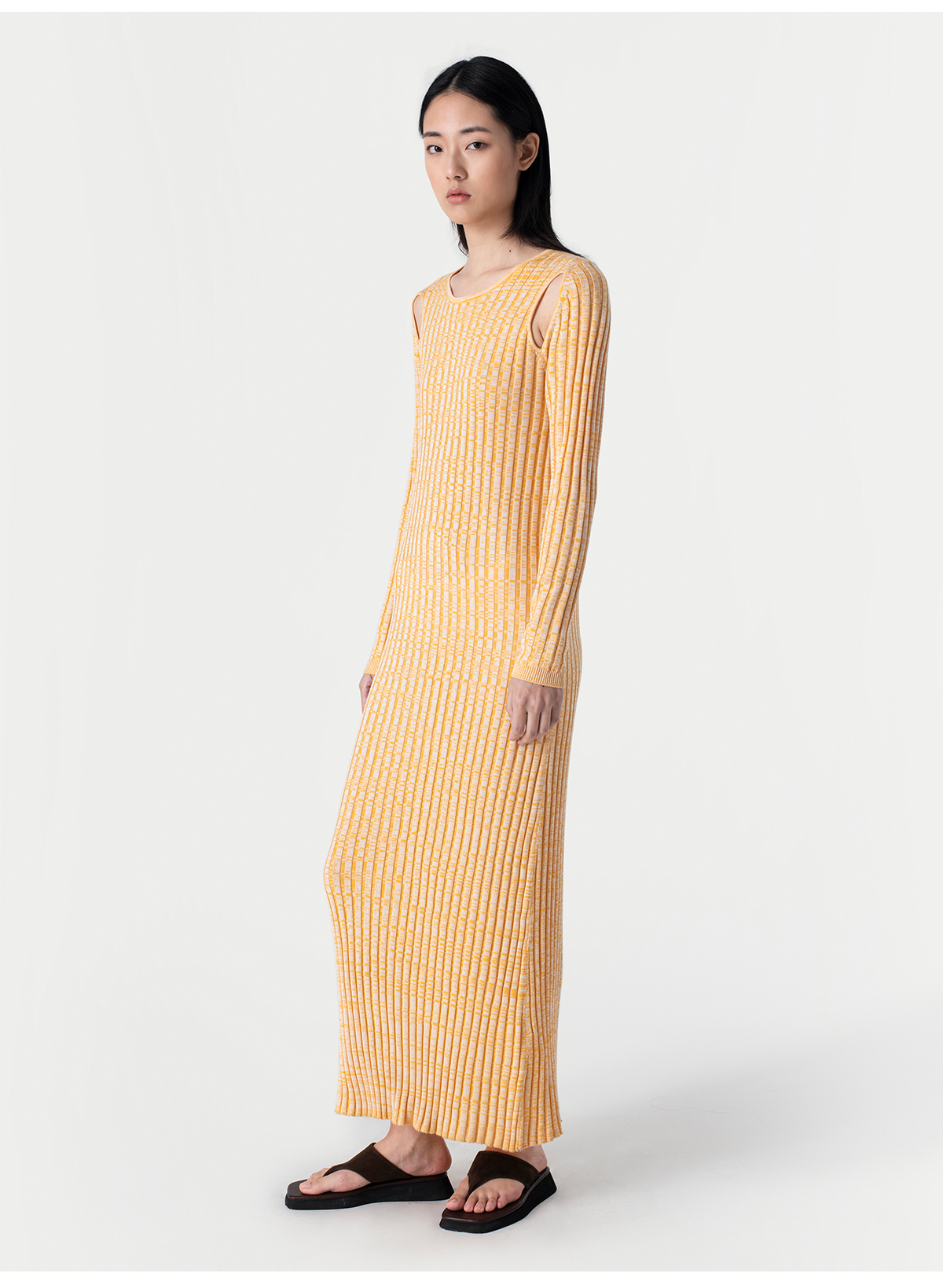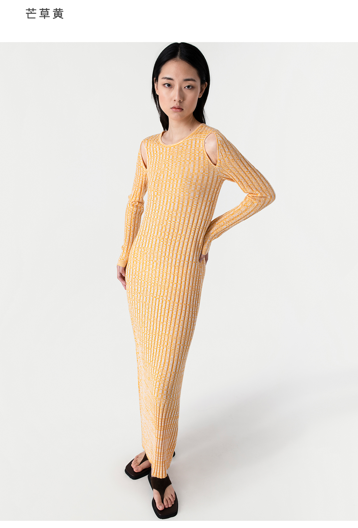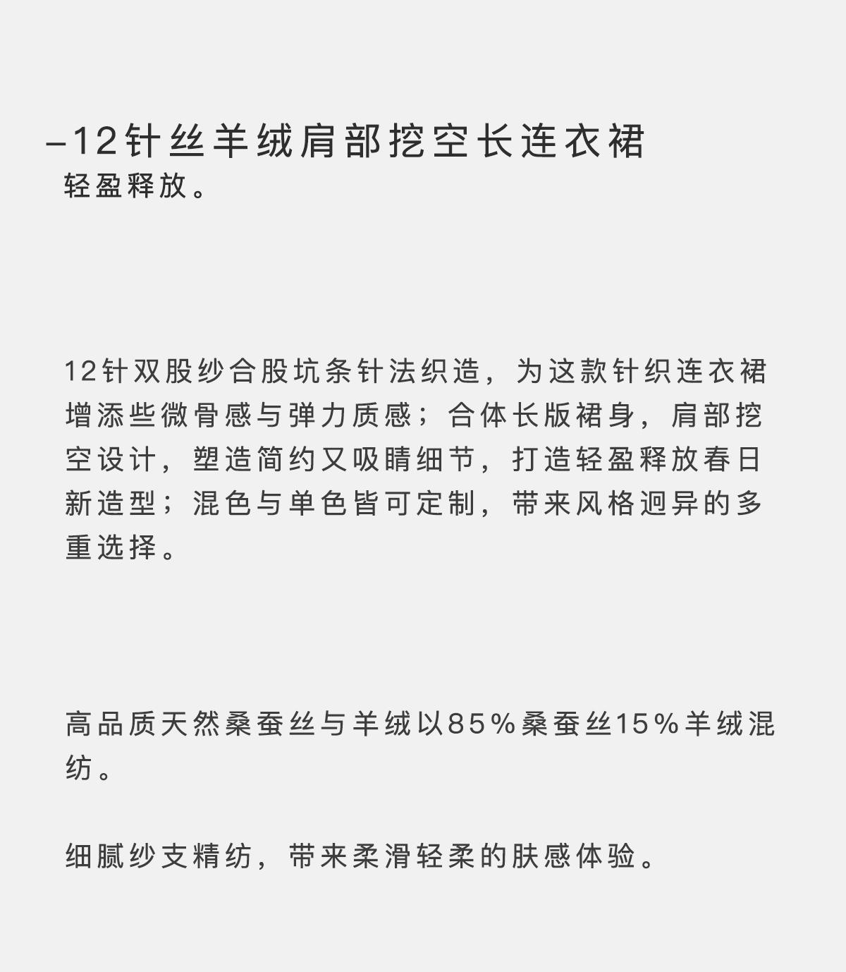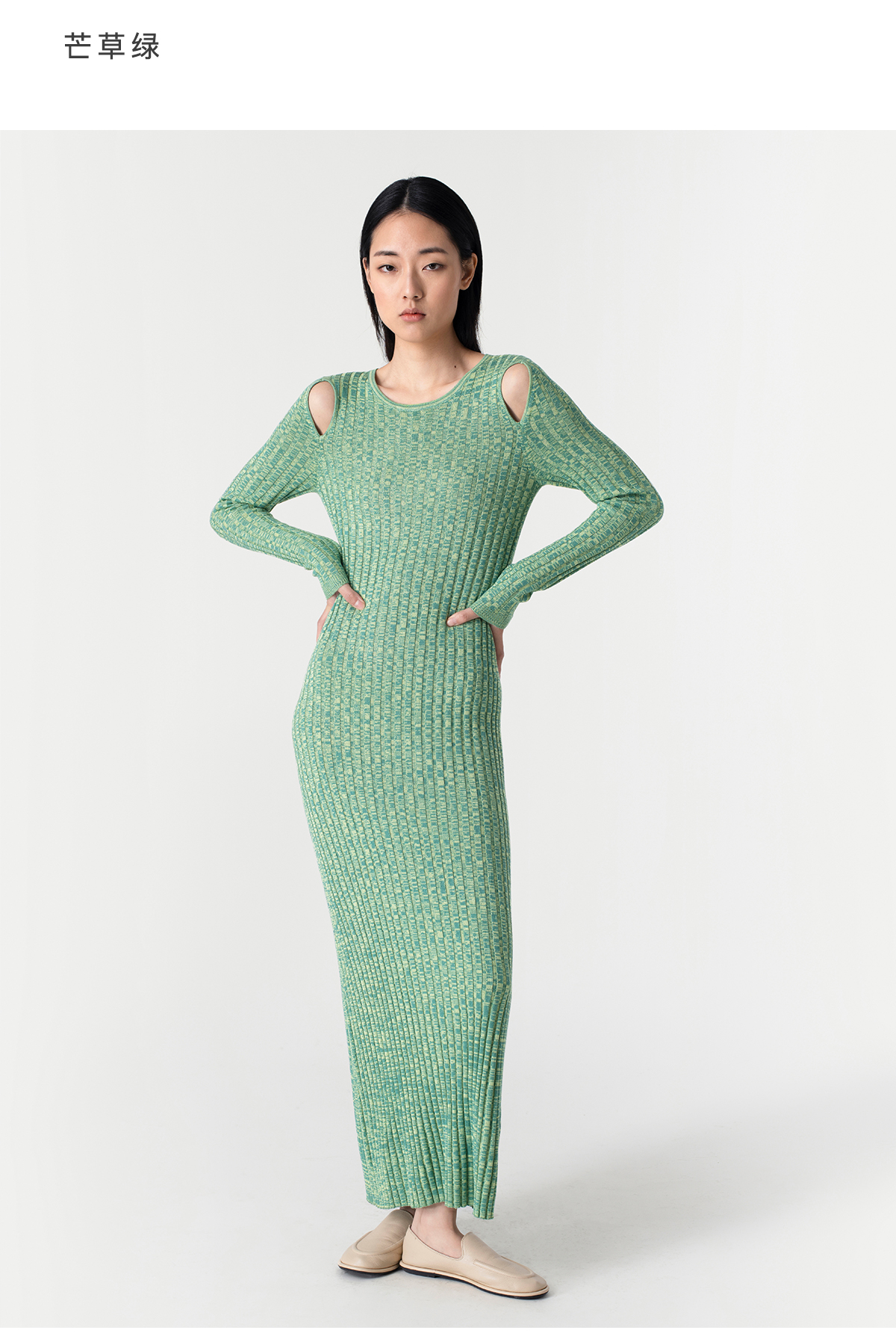 322工房轻盈释放肩部挖空丝羊绒连衣裙2023春夏长款针织裙子B014