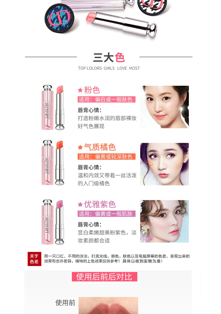 法国原装进口 Dior迪奥唇膏口红唇彩粉漾润唇膏女士套装3支装(001+004+006)