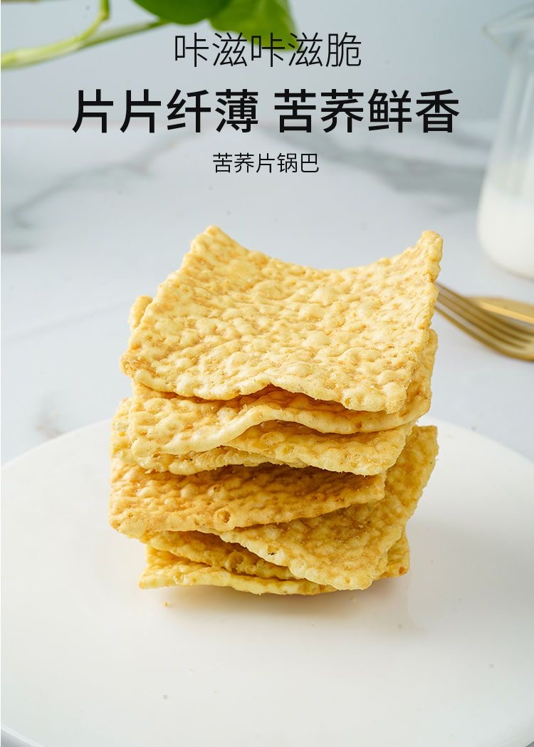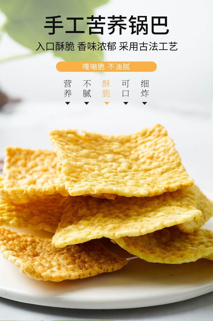 【片片纤薄!咔滋咔滋脆】不单独添加蔗糖苦荞片锅巴,健康零食,鲜香酥脆中老年代餐用休闲追剧零食品老少皆宜