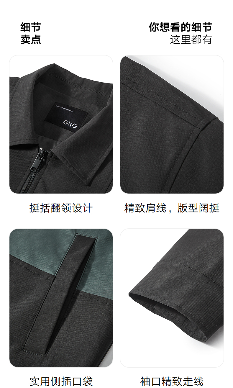GXG男装 2025年春季GXG热卖日常简约百搭拼接撞色男士翻领外套夹克