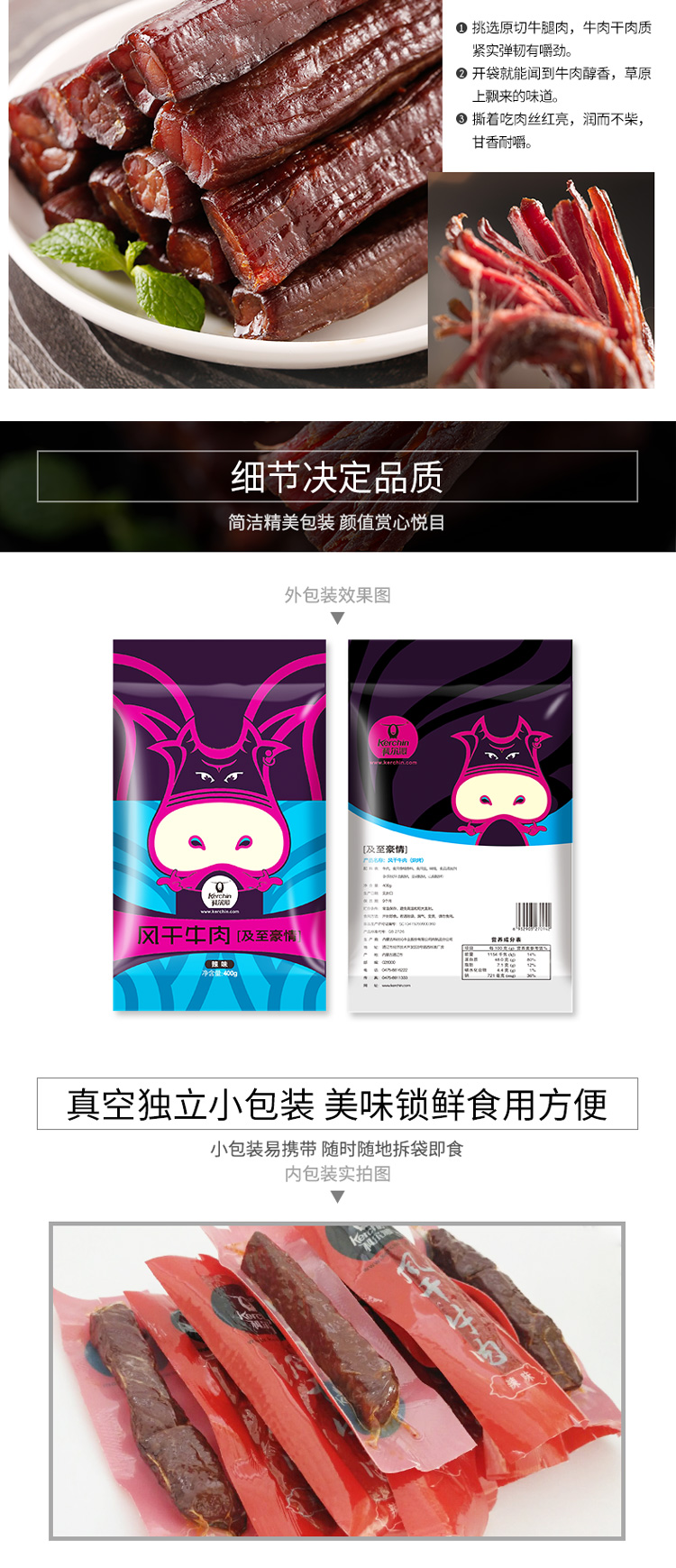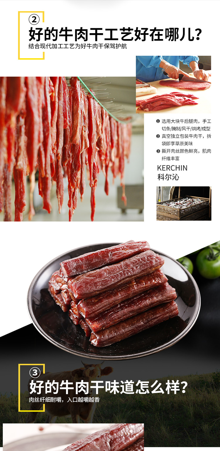 科尔沁 休闲肉脯零食 内蒙古特产 手撕风干牛肉干辣味400g
