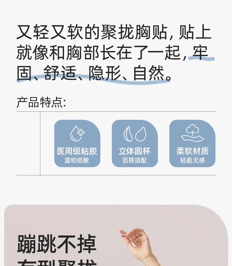 🔥显瘦显大提拉隐形【幸棉同款同源云感贝壳杯胸贴】医用级水感凝胶,牢牢贴肤,温和不刺激 狂蹦不掉不怕出汗🥰