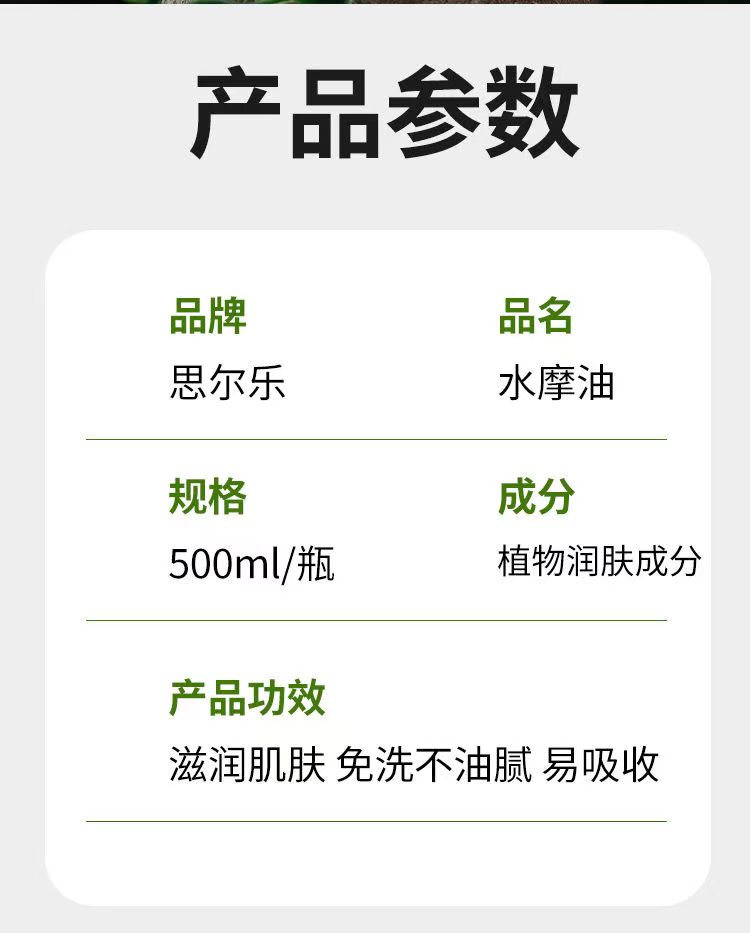 【特价 】思尔乐水摩油500ML精油按摩润滑油spa水膜免洗足浴专用全身推油一整箱