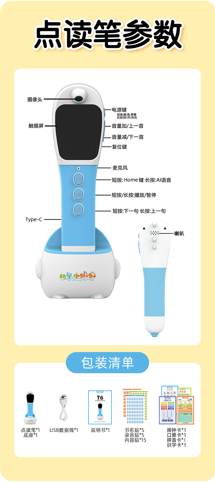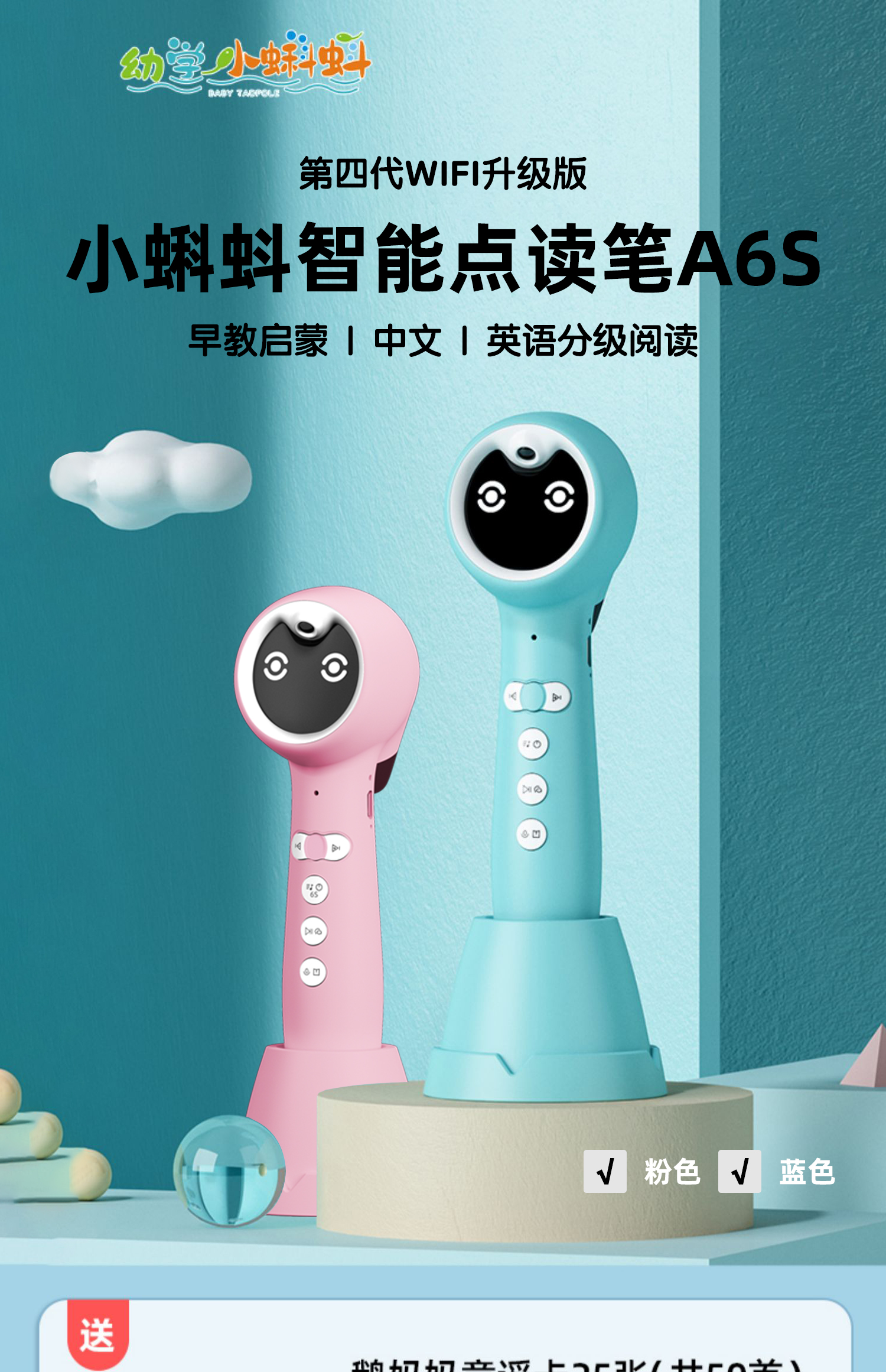小蝌蚪A3S /A6S/T6/P5 (64G) 智能双语点读笔 早教启蒙 |中文 |英语分级阅读