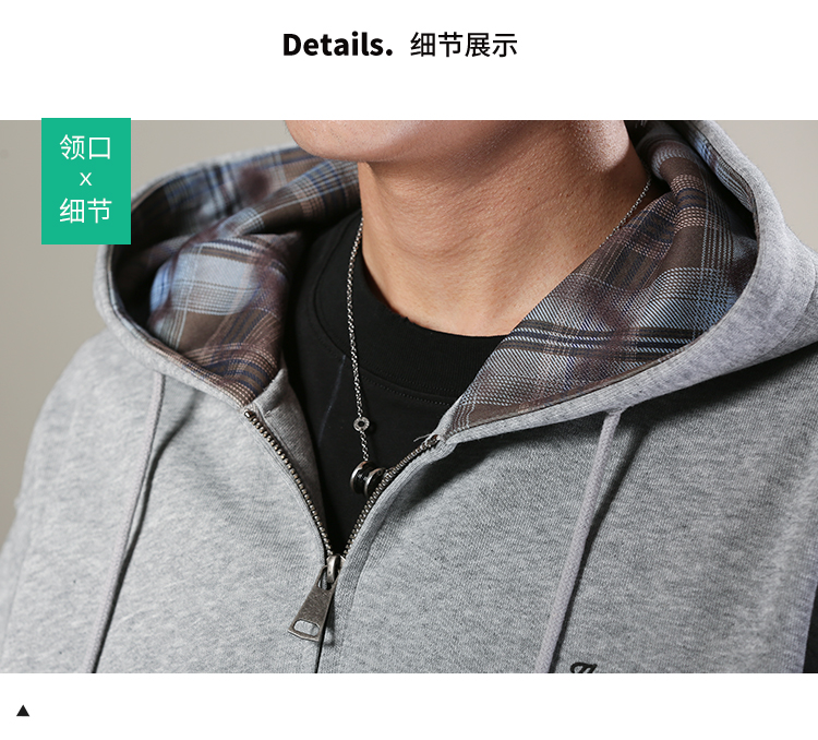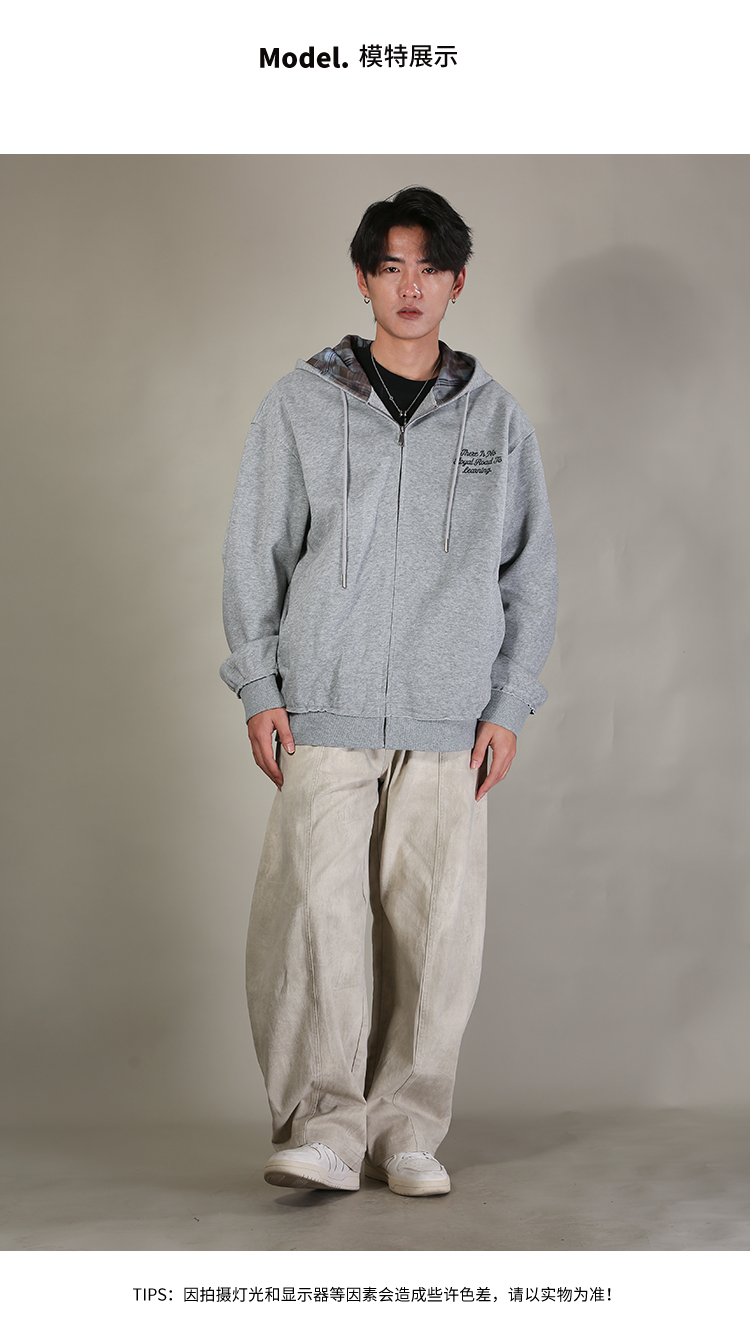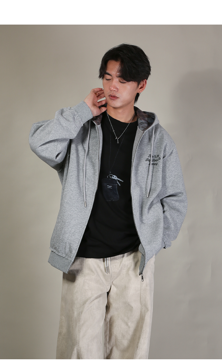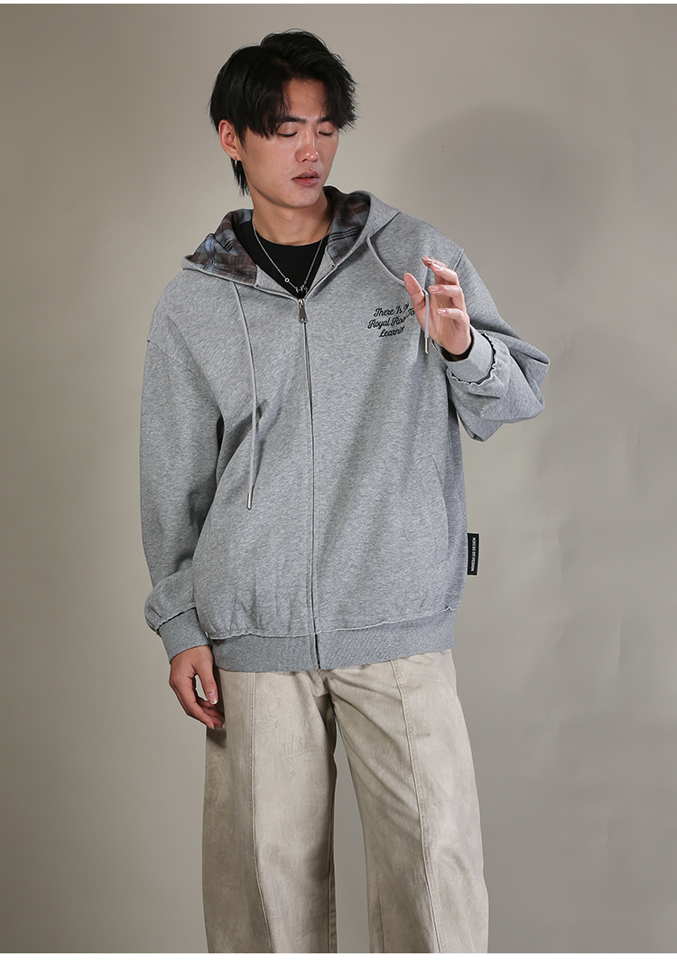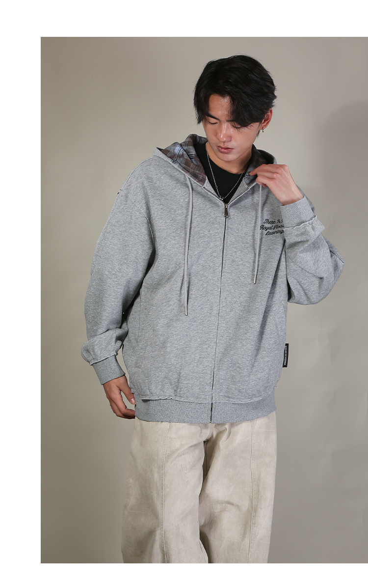 DRONKOO 2026 连帽帽里撞格纹左印花微阔卫衣料中厚开衫
