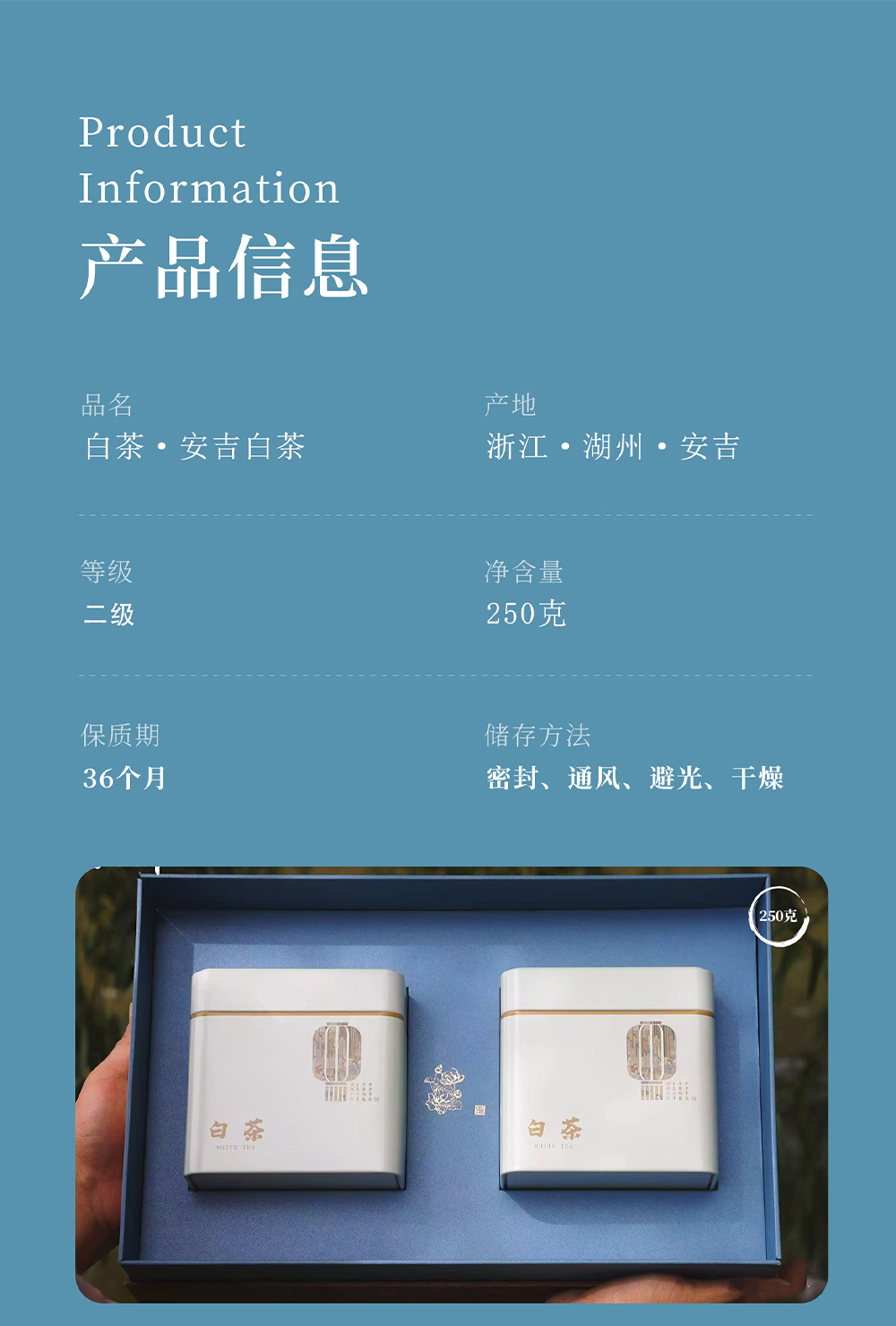 品六安吉白茶二级款礼盒包装250g (lalcg)