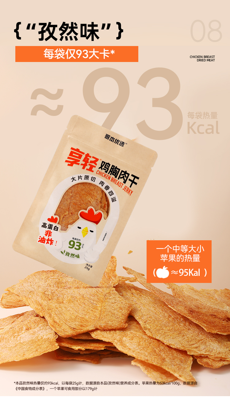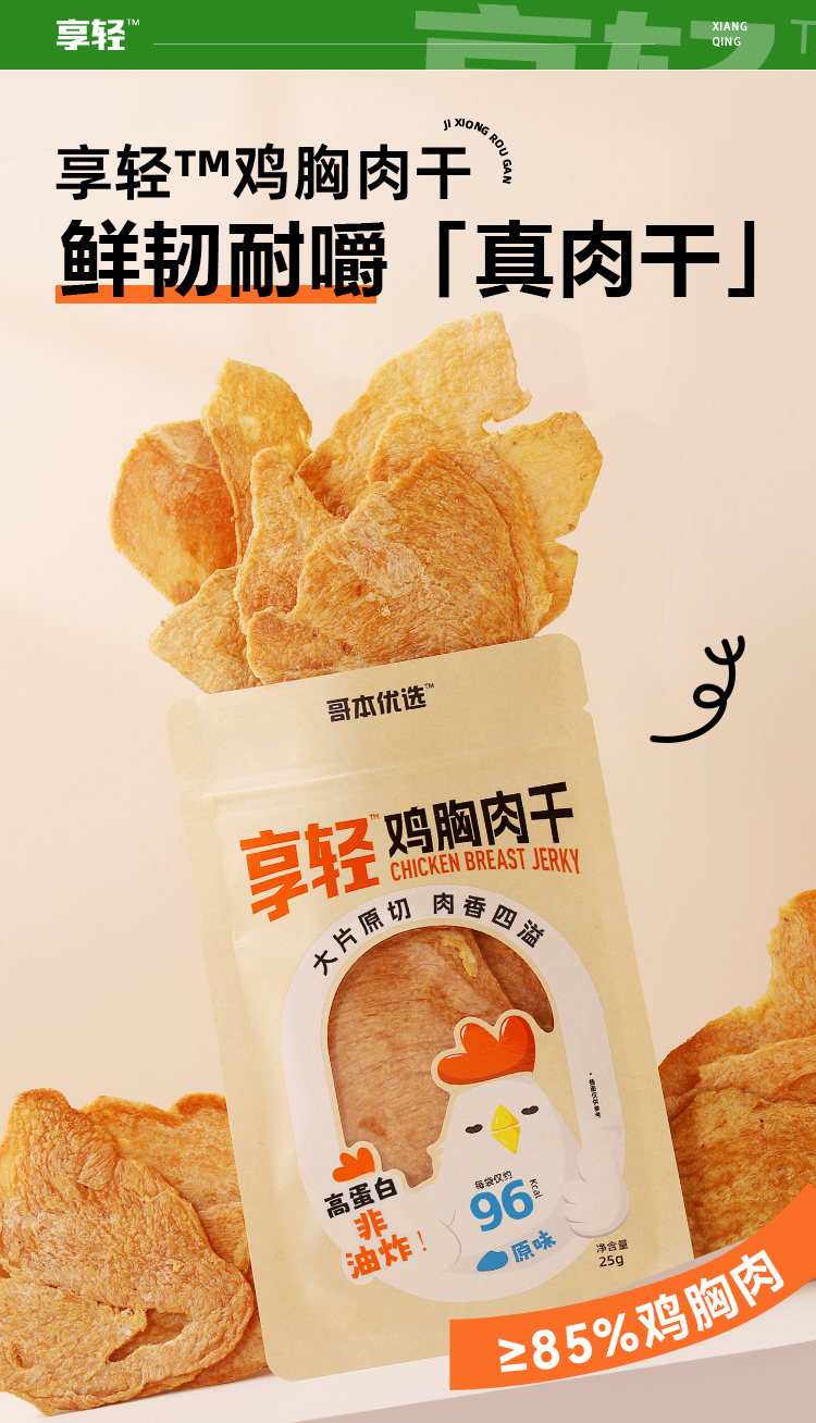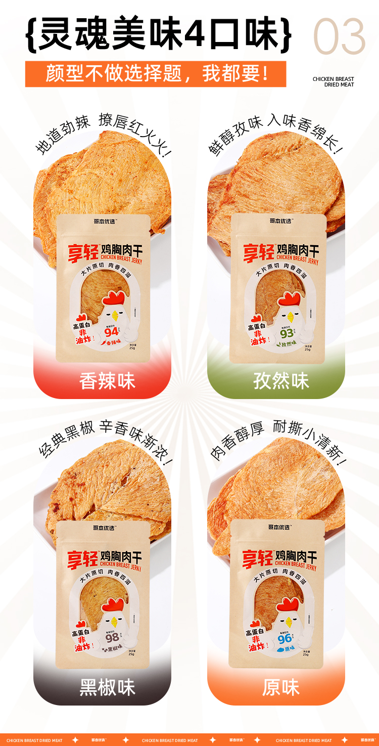 【闪电旗舰店】享轻™鸡胸肉干25g/袋 100g/2.5g碳水 孜然味/香辣味/黑椒味/原味