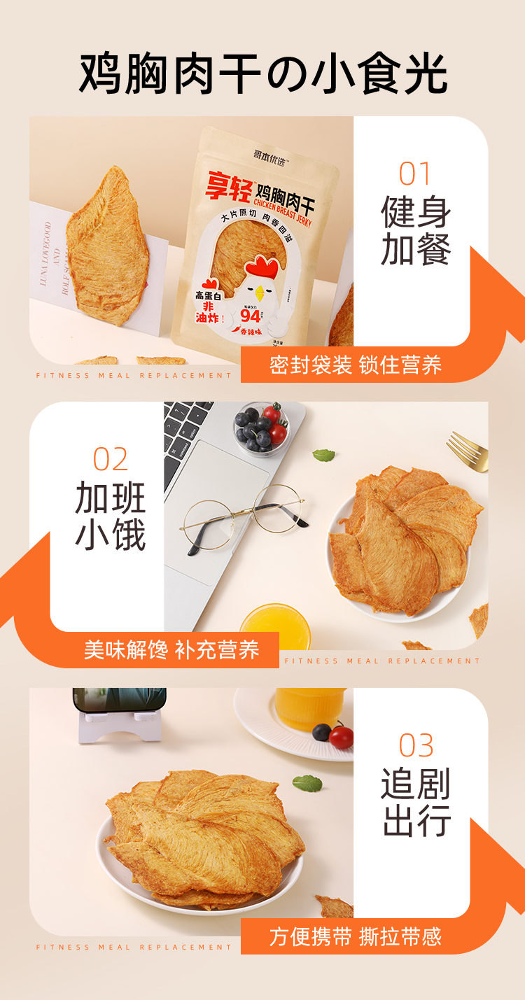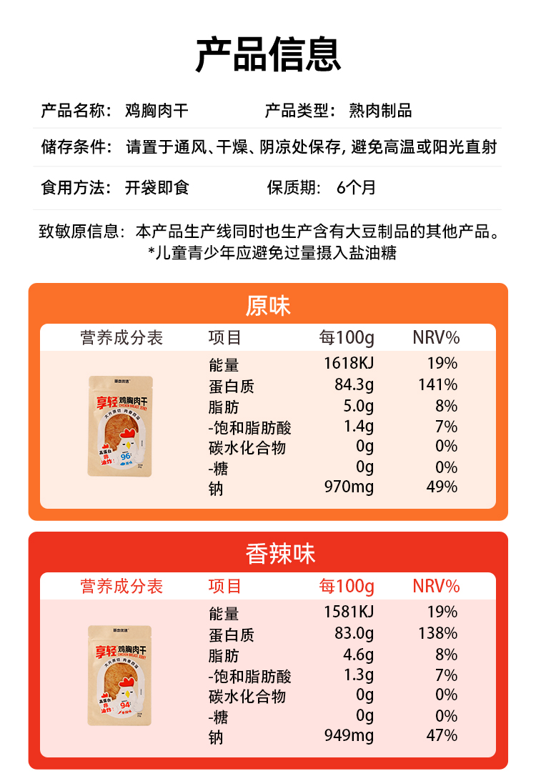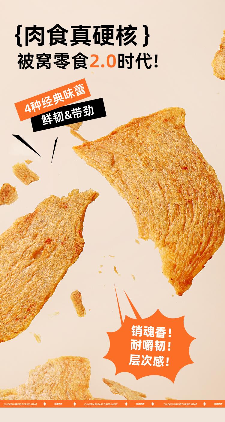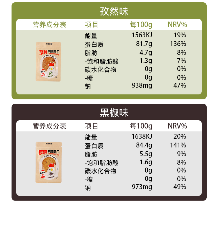 【闪电旗舰店】享轻™鸡胸肉干25g/袋 100g/2.5g碳水 孜然味/香辣味/黑椒味/原味