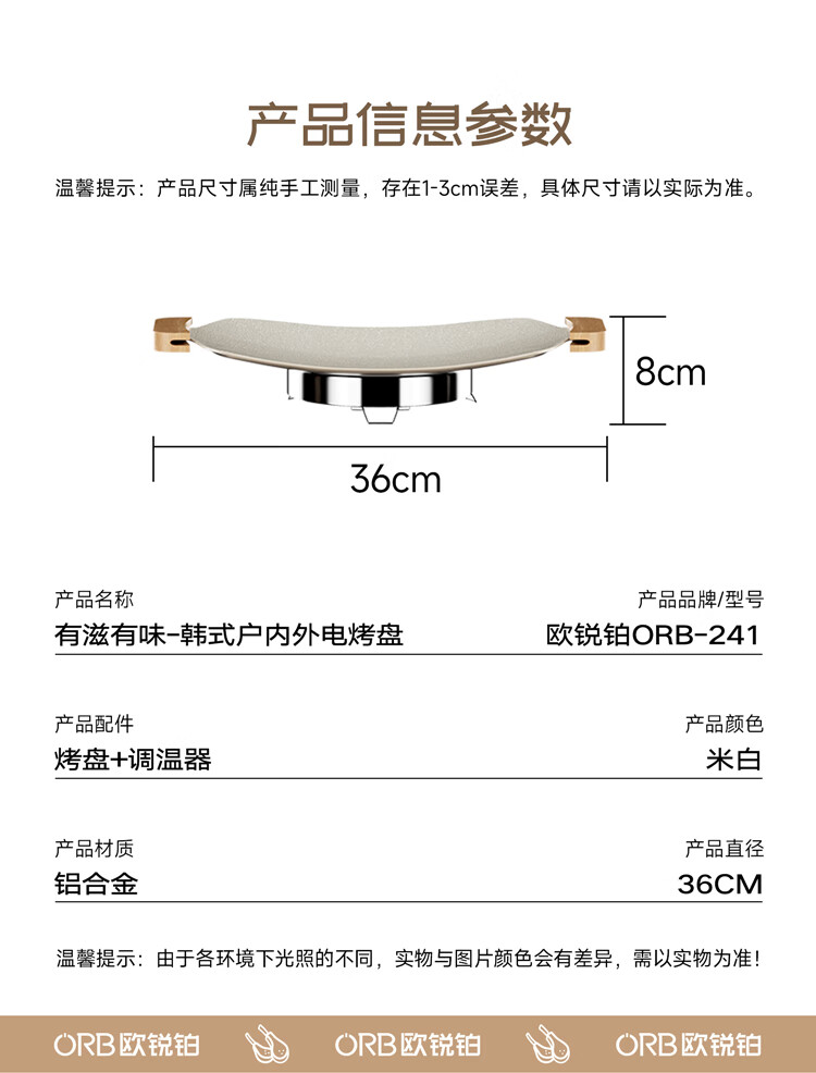 【分仓直发包邮】欧锐铂有滋有味韩式户内外电烤盘ORB-241