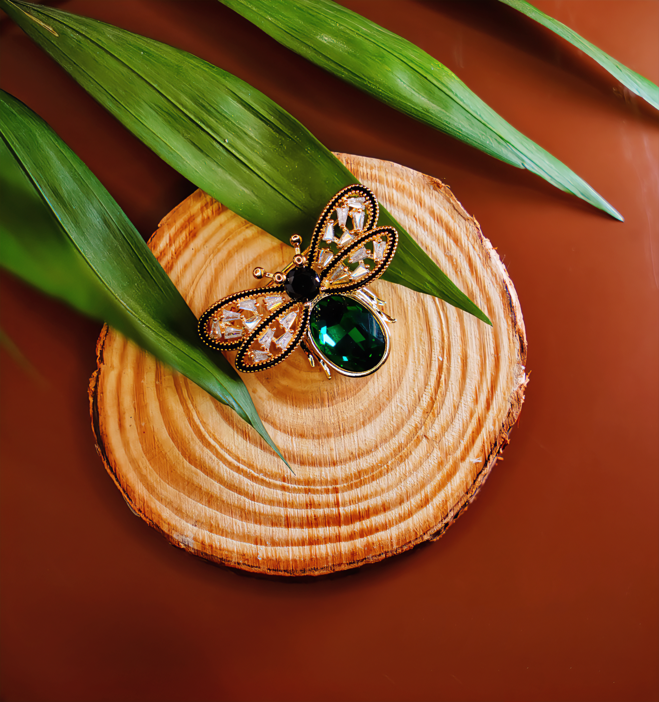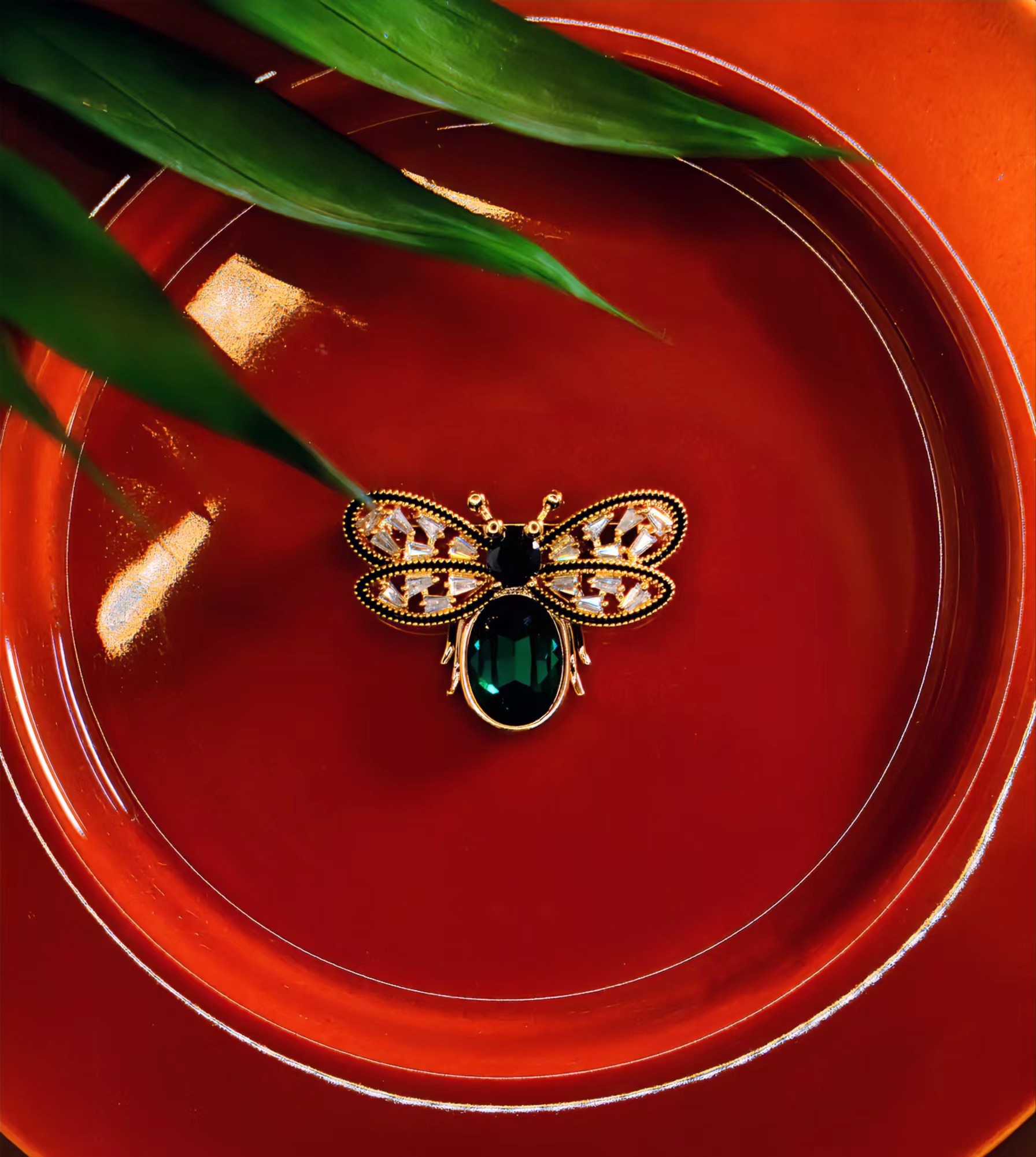 L925银合成锆石胸针 蜜蜂满钻胸针时尚精致绿色气质优雅镶嵌