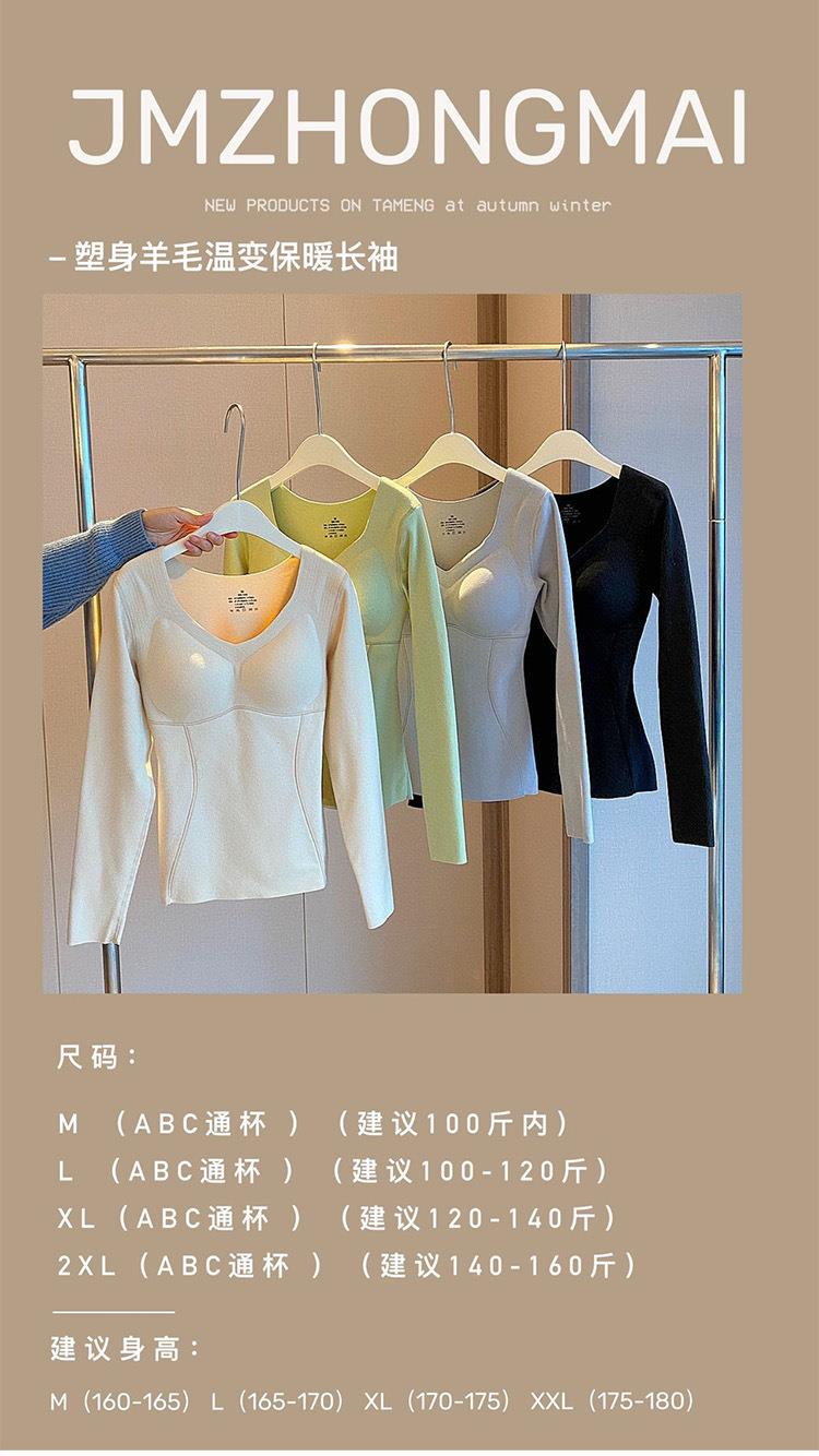 JM中脉塑身羊毛温变保暖长袖新款黑科技发热塑身羊毛温变保暖长袖加厚冬季内搭打底衫