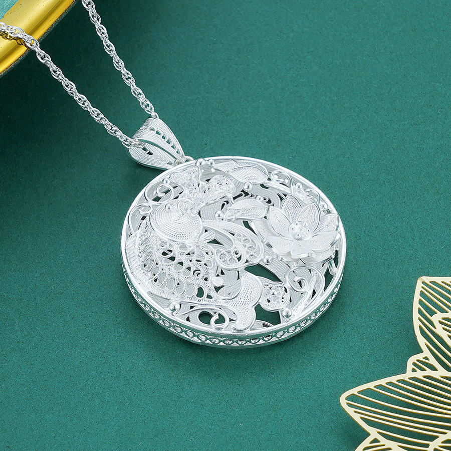 【设计理念】:此款吊坠设计由莲花和鲤鱼组成的中国传统的吉祥图案,用以称颂富裕祝贺之意。莲是连的谐音,年是鲶的谐音,鱼是余的谐音,称连年有余。