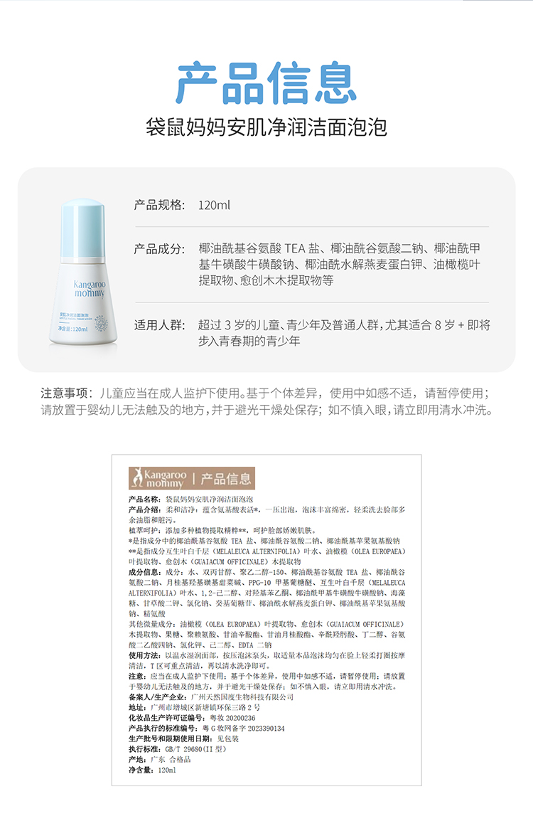 【修护洁面泡泡】敏感肌可用 清洁油脂 温和润护皮脂 去油不去水 安肌净润洁面泡泡(修护版)120ml