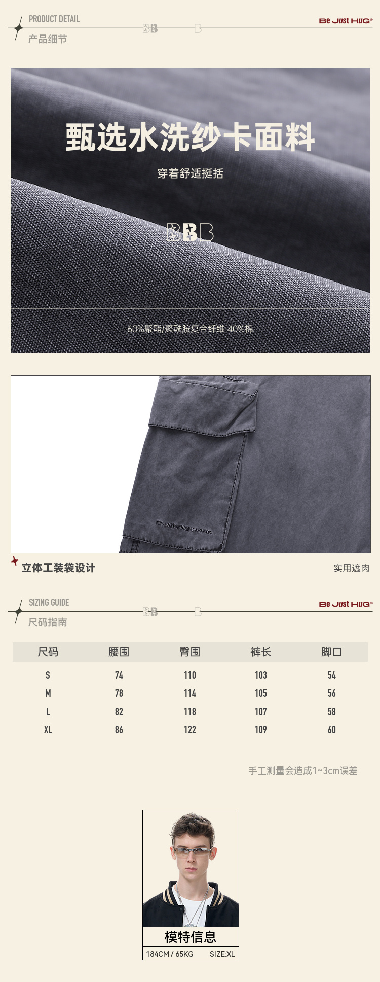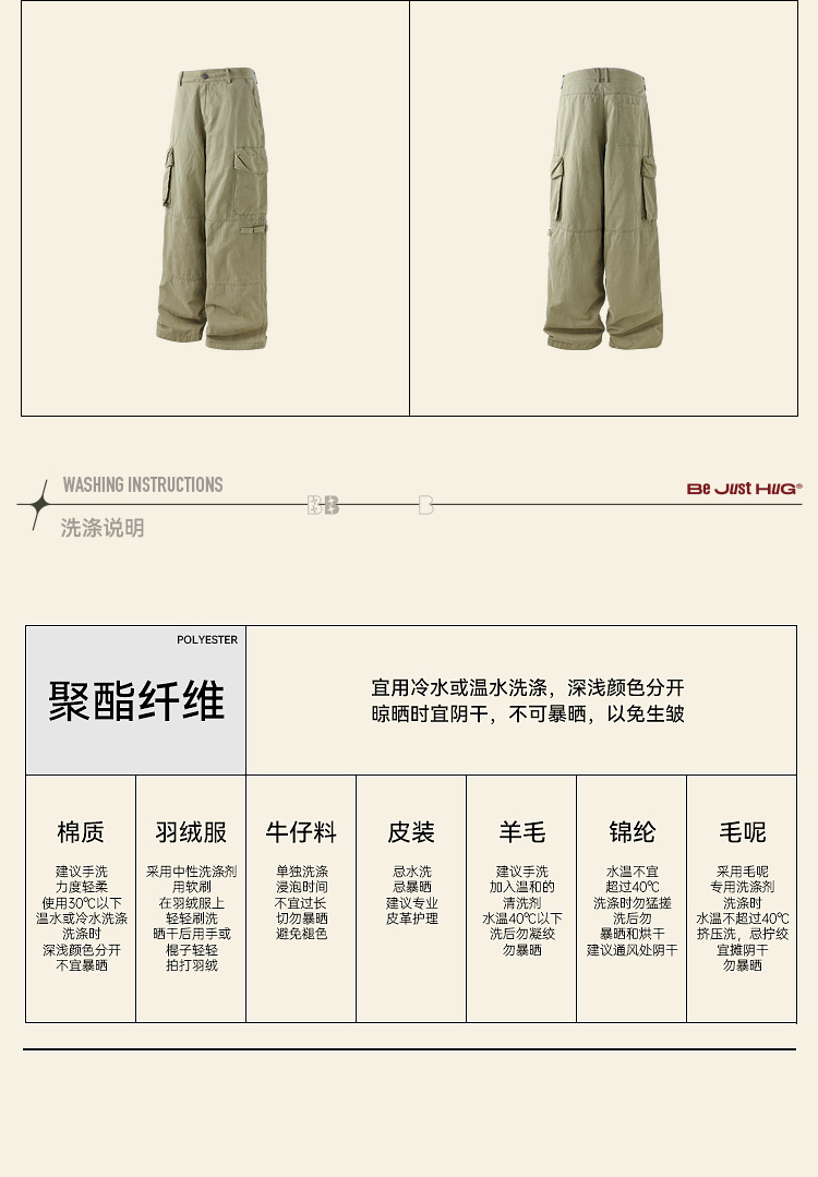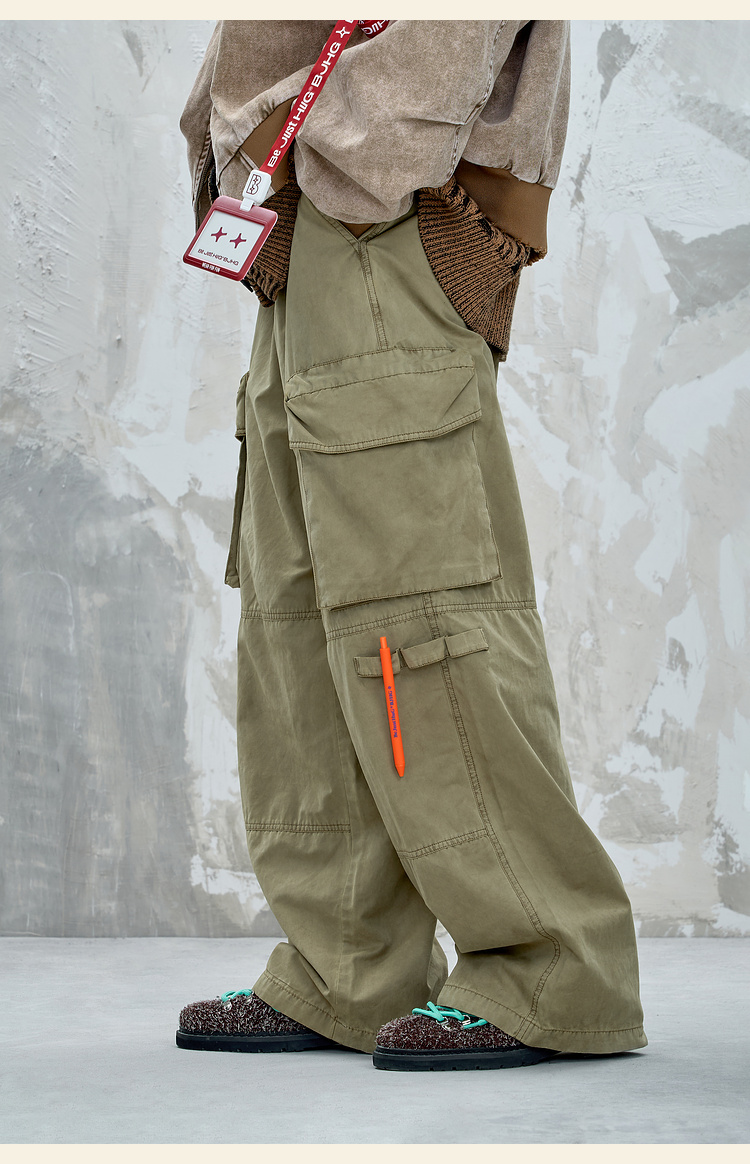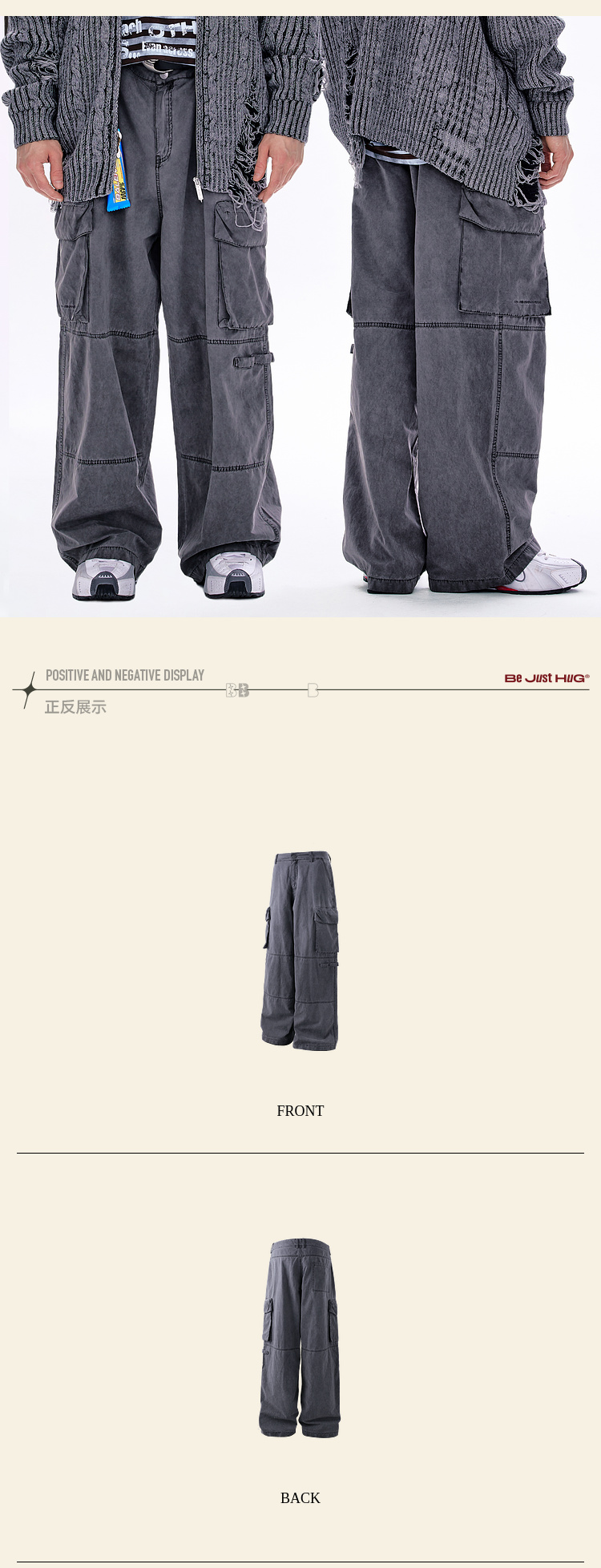 BJHG不计后果水洗工装裤子男款秋季潮牌宽松百搭直筒复古休闲裤女
